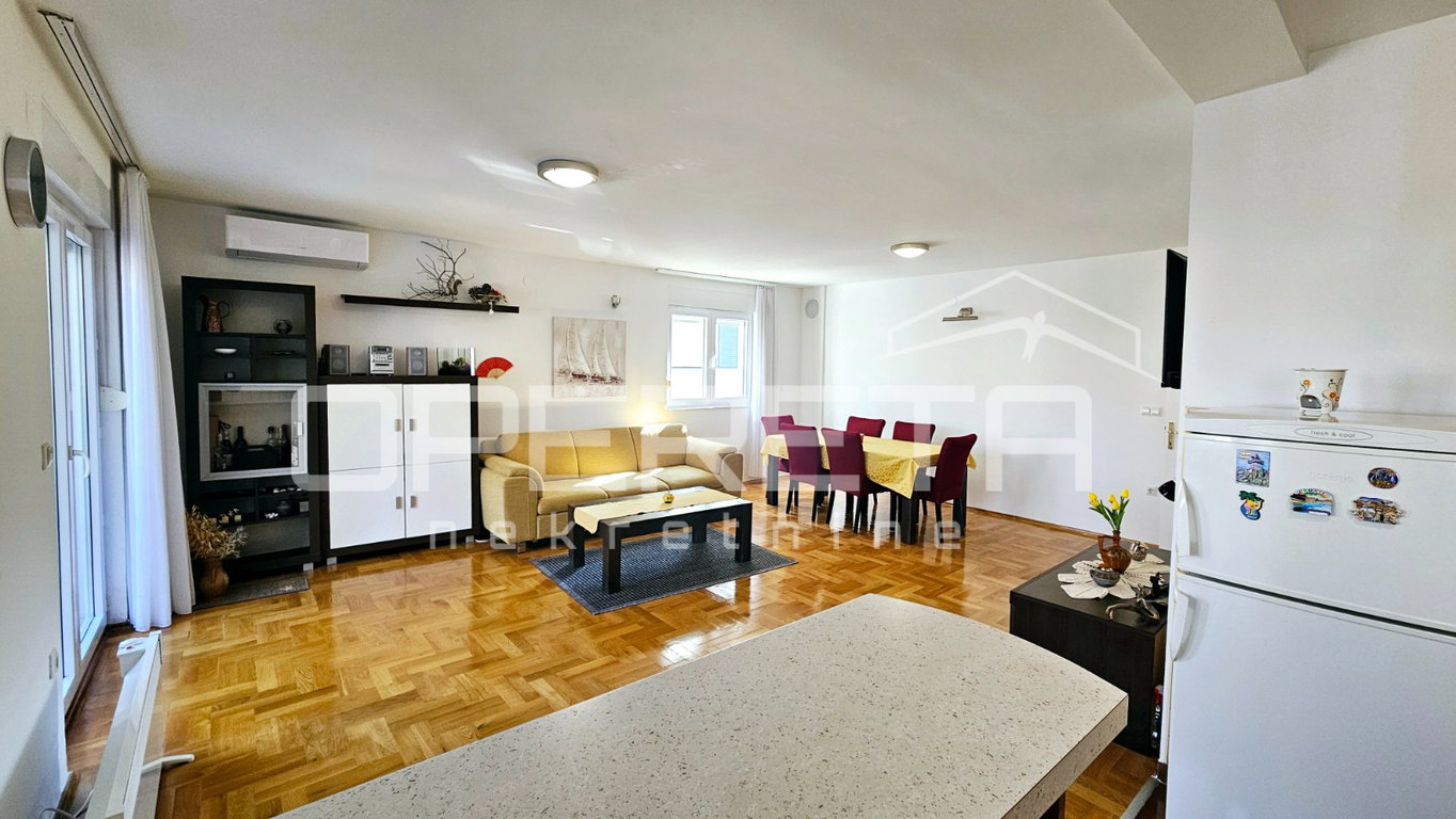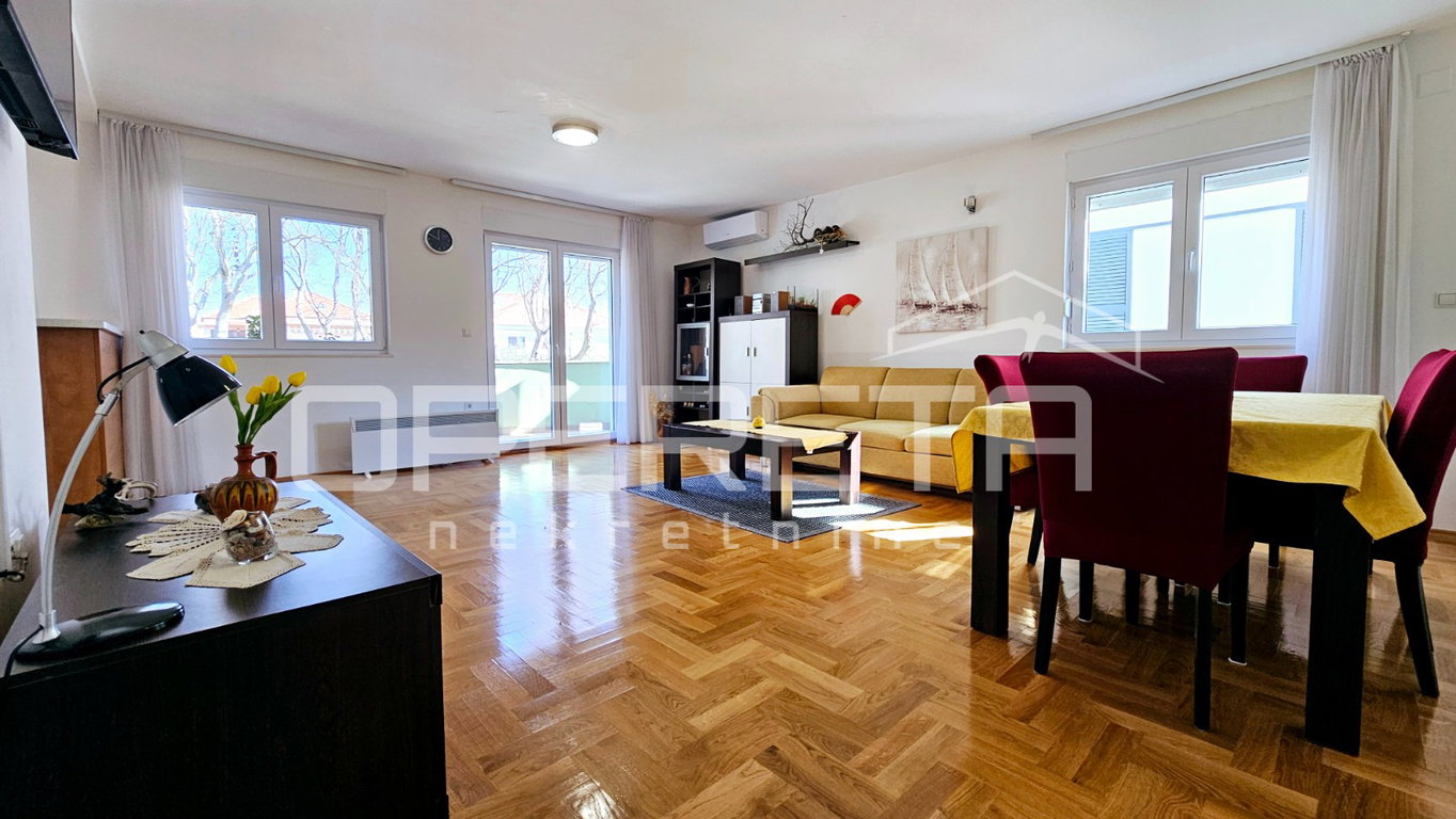 Prostran i ugodan 4-soban stan izvrsnog tlocrta na prvom katu ( od ukupno 3 kata) uredno održavane stambene zgrade, na izvrsnoj i atraktivnoj lokaciji, blizu mora i plaže, u jednom od najljepših dijelova grada Zadra.