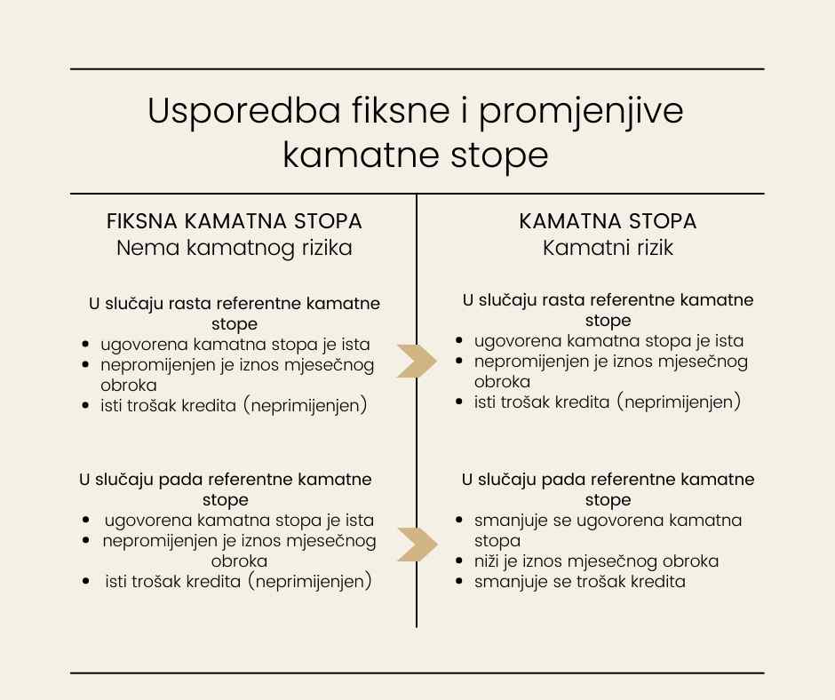 Odabirom fiksne kamatne stope klijenti imaju mogućnost zaštititi od povećanja visine kamatne stope. S druge strane, klijenti koji nastave koristiti promjenjivu kamatnu stopu tijekom otplate kredita, i dalje će snositi dio rizika njena mogućeg rasta u budućnosti, iako ona u nekim razdobljima može biti i niža u odnosu na fiksnu.