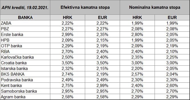 Pogledajte nominalne kamatne stope, fiksnost kamatne stope, rok fiksnosti, referentnu kamatnu stopu kod primjenjive kamatne stope. Banke imaju i razlike u procjeni kreditne sposobnosti, omjeru vrijednosti nekretnine i kredita, obvezi prijenosa primanja, plaćanju police osiguranja.