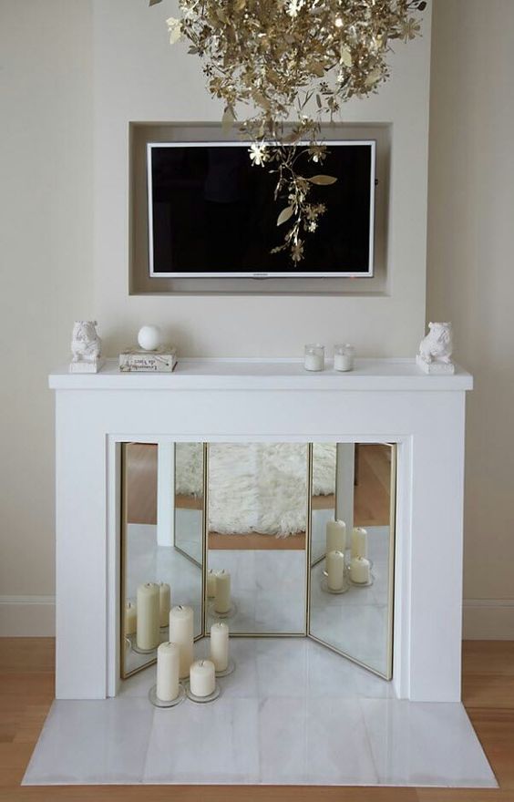 Još jedna popularna vrsta kamina u interijerima je imitacija kamina odnosno lažni kamin. Može se izraditi na razne načine: od drveta, gips-kartonskih ploča, od kartona, stiropora, drvenih zidnih obloga, ovisno o budžetu. Postoje i gotovi okviri od gipsa za kamine koji se jednostavno mogu pričvrstiti na zid i na taj način imitirati kamin. Mogu biti klasičnijeg izgleda, kitnjastijeg poput štukatura ili modernog izgleda ravnih linija. Ovakav kamin može služiti kao polica za dekoraciju. Imitacija ognjišta može biti prebojana u crnu boju kako bi vizualno stvorilo dubinu ili se može ispuniti nacijepanim drvom za ogrjev. Također se mogu držati knjige ili manji kipovi i vaze, ogledalo, biljke… Interesantan detalj su i svijeće i svijećnjaci koji se mogu postaviti ispod i imitirati vatru u kaminu. Ideja i inspiracija za dizajn i dekoriranje ovog kutka ima puno i shodno godišnjem dobu ili blagdanima može uvijek imati drugačiji izgled i oplemeniti prostor.