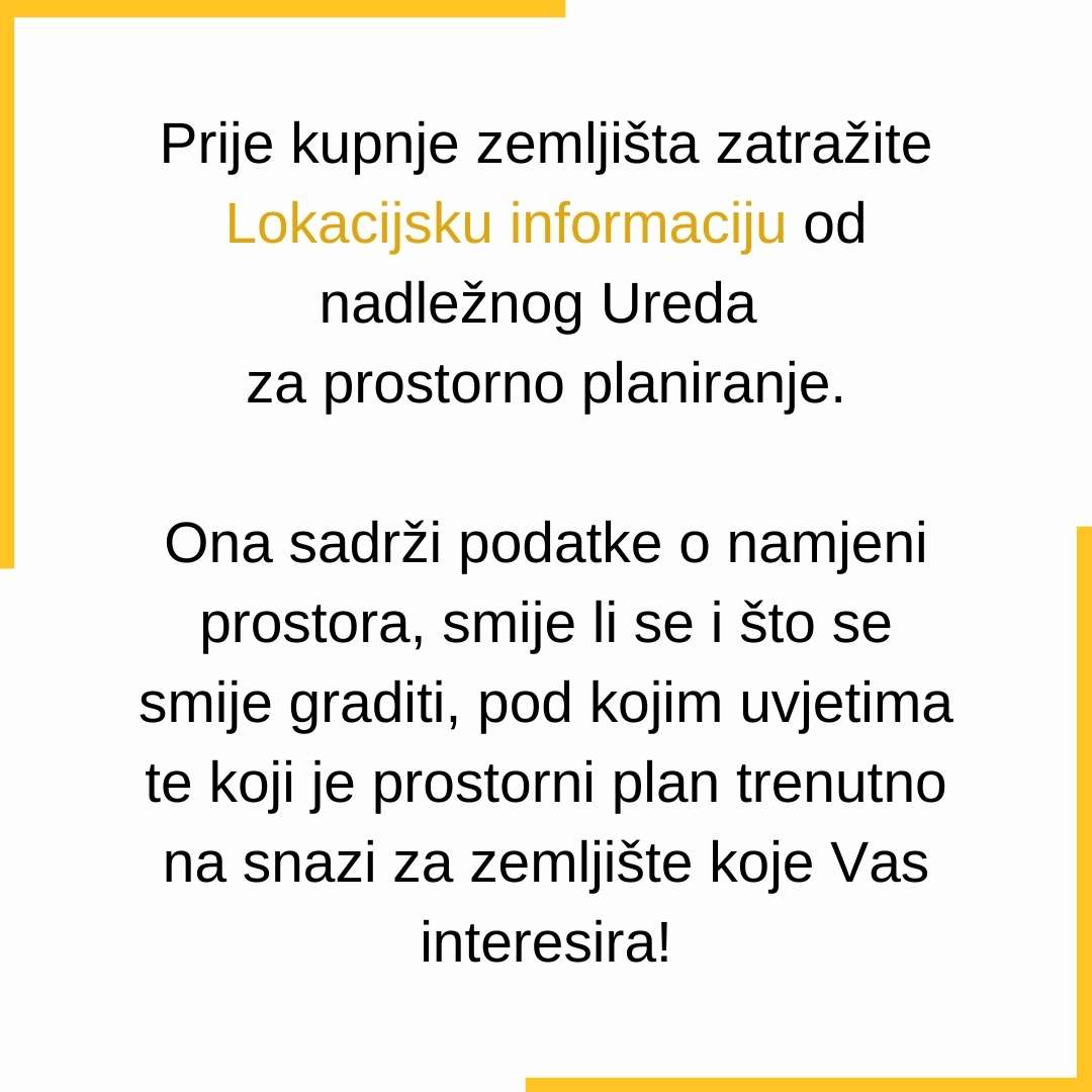Pri kupnji zemljišta bitno je znati je li dopuštena gradnja na zemljištu i na kojem području zemljišta (npr. zemljište ima 850 m2, ali 350 m2 je u zelenoj zoni, gdje nije dopuštena gradnja), koja je propisana minimalna veličina zemljišta, koja je dopuštena izgrađenost zemljišta te minimalna udaljenost građevine od susjedne parcele? Na sve navedeno morate obratiti pažnju.