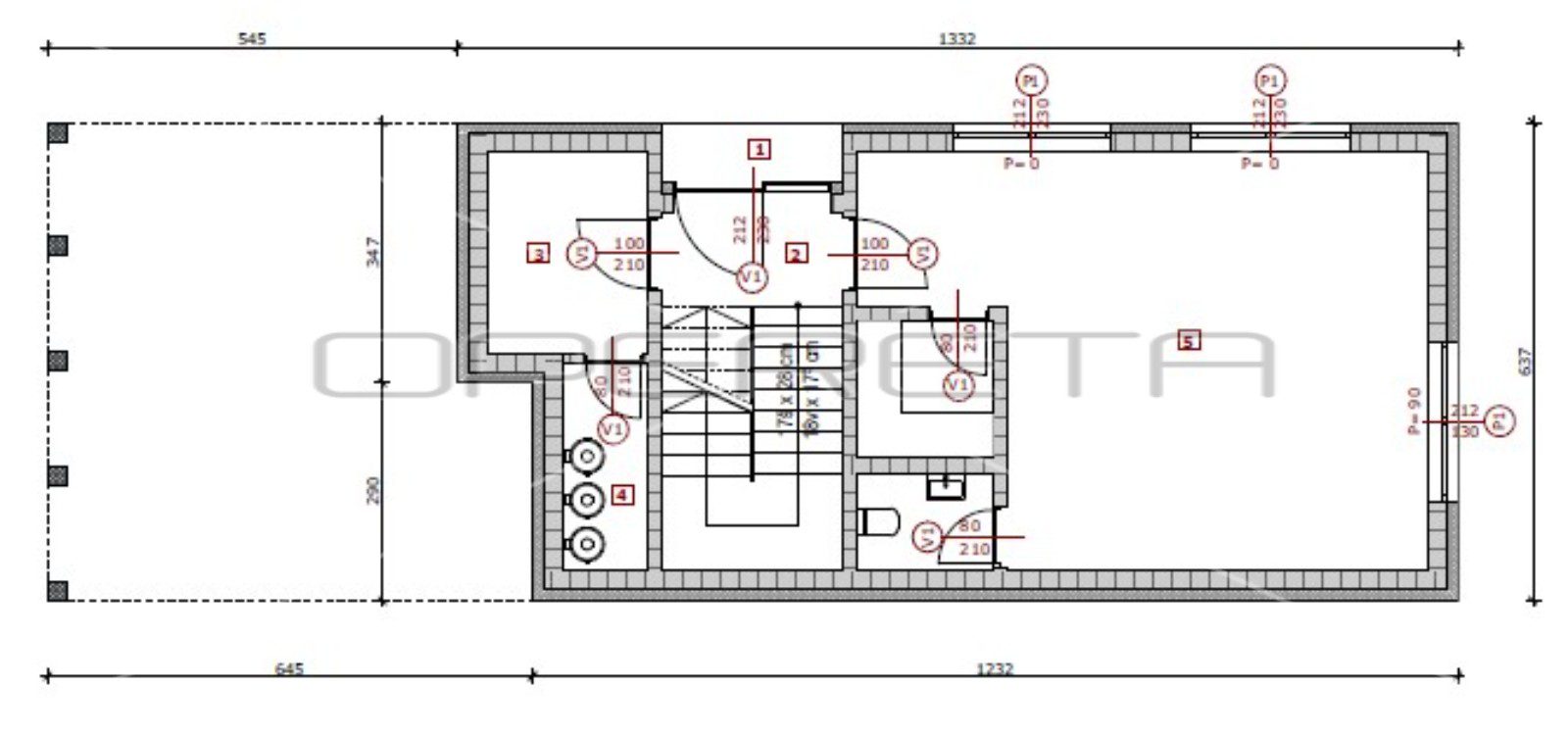 Na području centra prodaje se kuća za rušenje sa idejnim projektom za izgradnju manje stambene poslovne zgrade ukupne površine 120 m2.