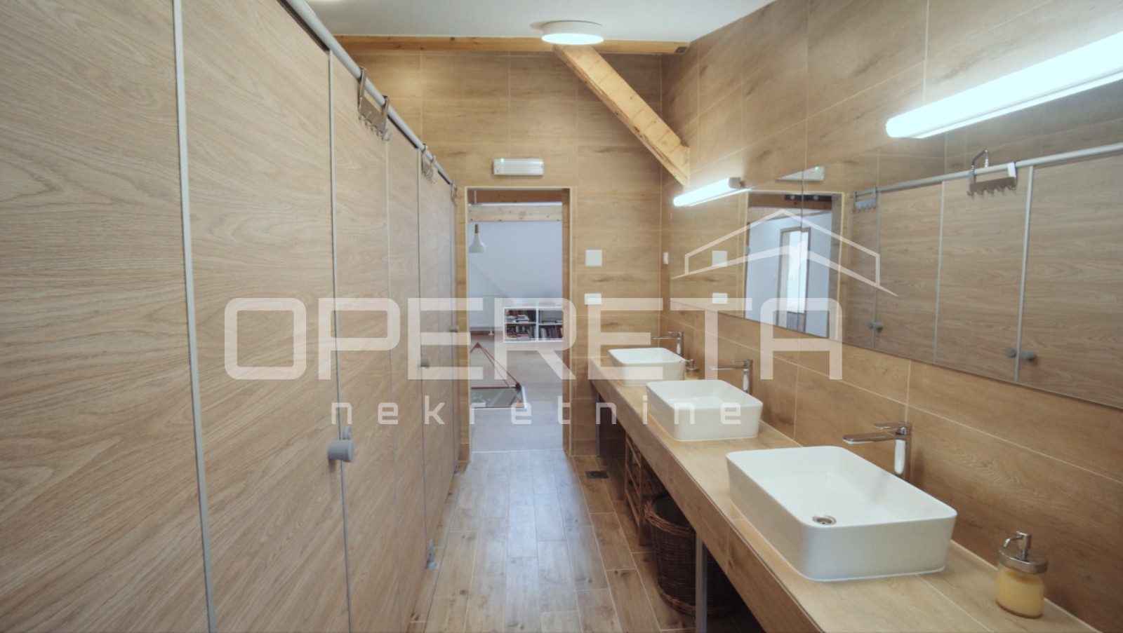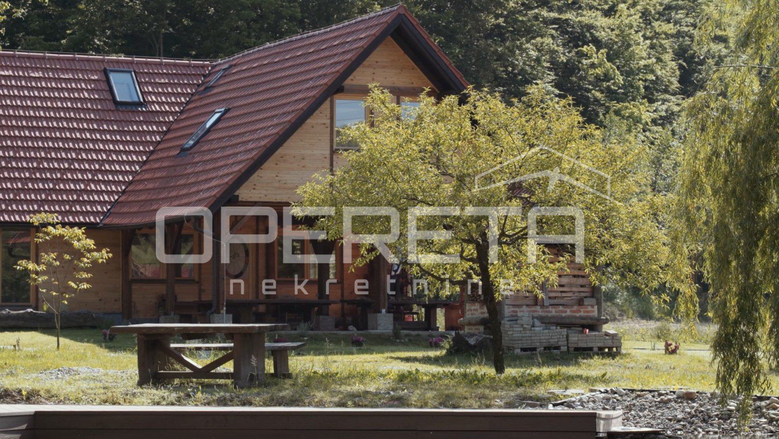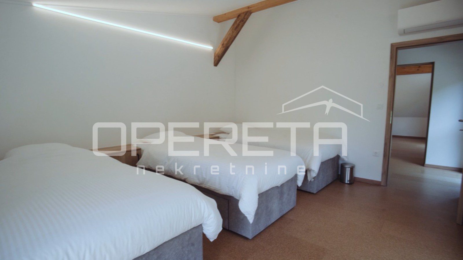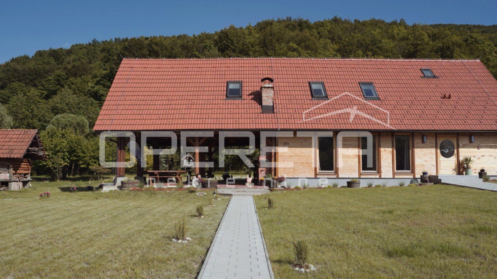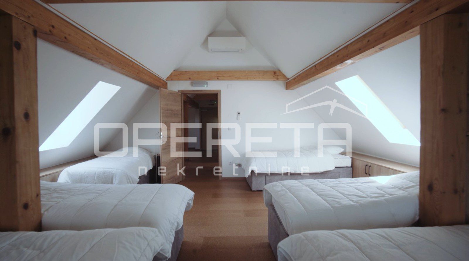 Preko 400 m2 korisnog prostora, 5 spavaćih soba s kupaonama i kompletnom infrastrukturom, idealno za smještaj grupe ljudi. Centralno grijanje na pelete.