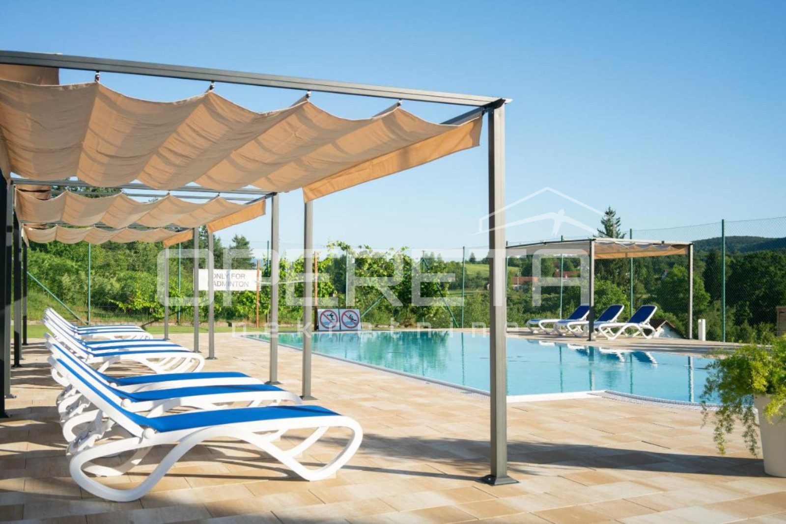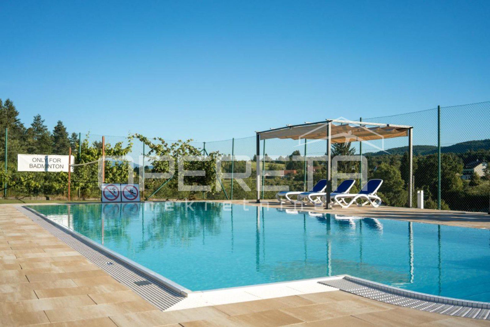 • Dodatni objekti: bazen s grijanjem, igralište za badminton, dječje igralište, teretana, spremište za bicikle