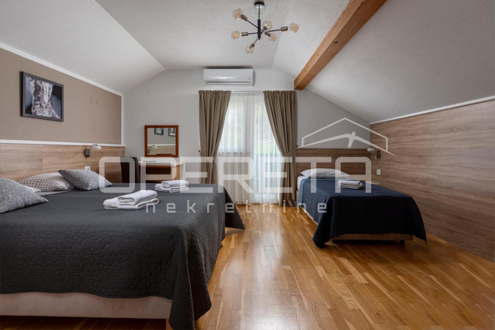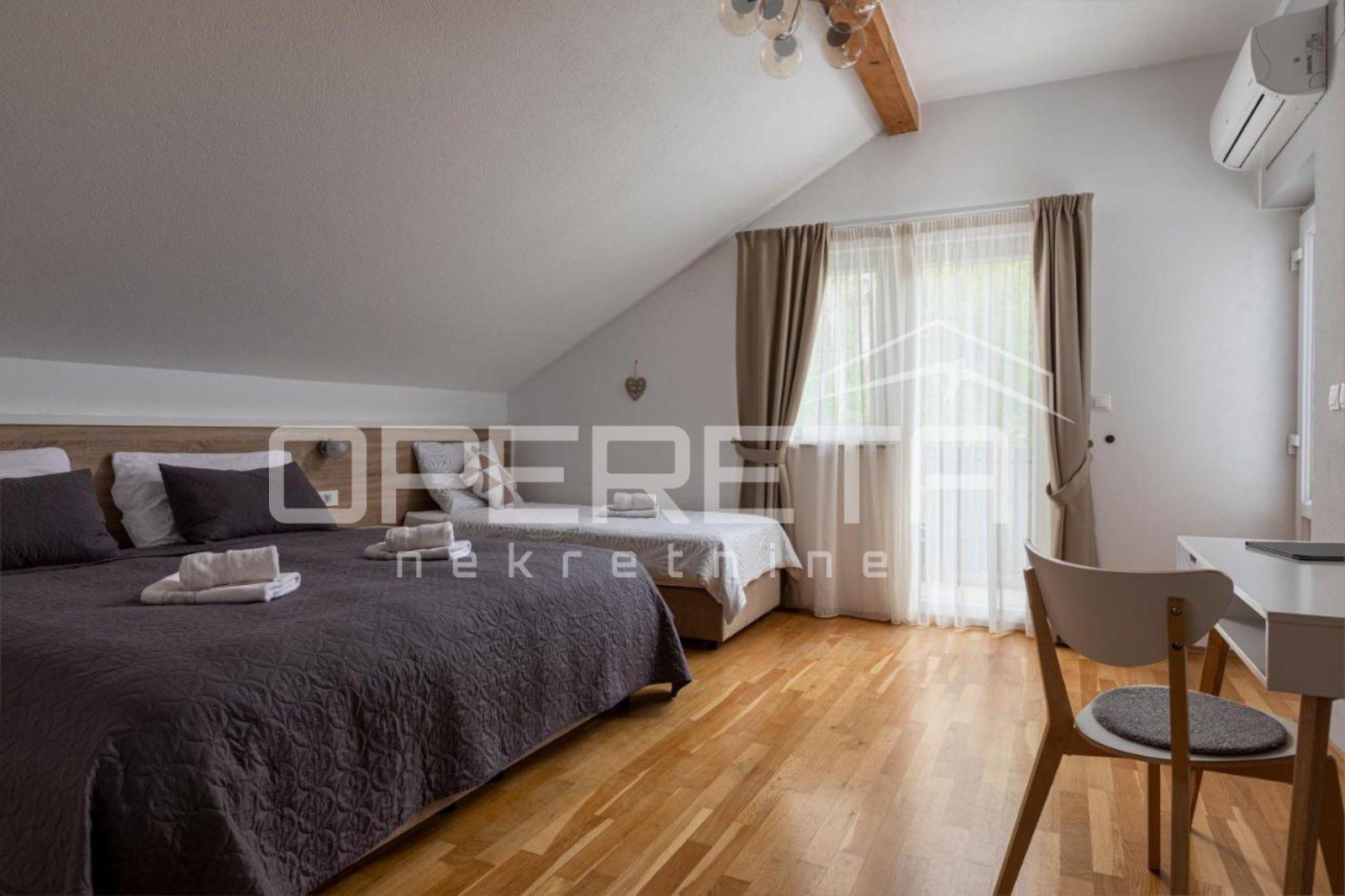 • Grijanje: centralno (pelet, drva, ulje), klima uređaji