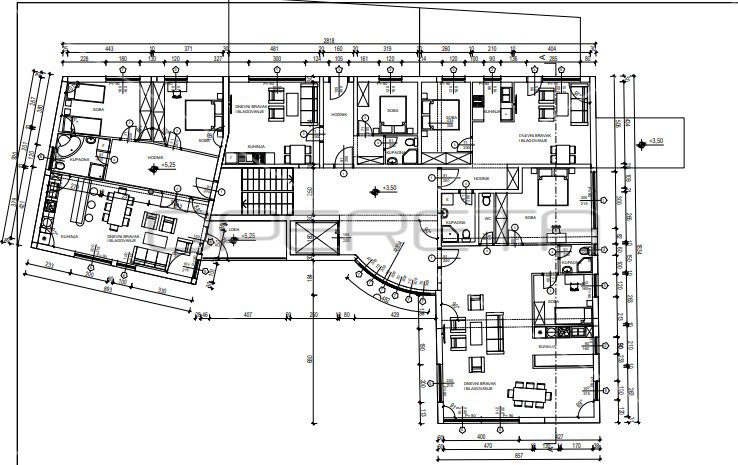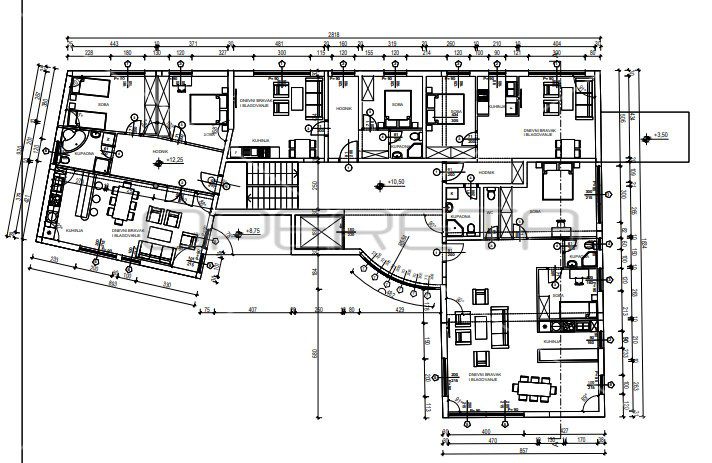 Predloženim rješenjem dovršetka zgrade predlaže se ukupno uređenje 13 samostalnih stambenih cjelina, zajedničkog prostora zgrade i spremišta u podrumu.