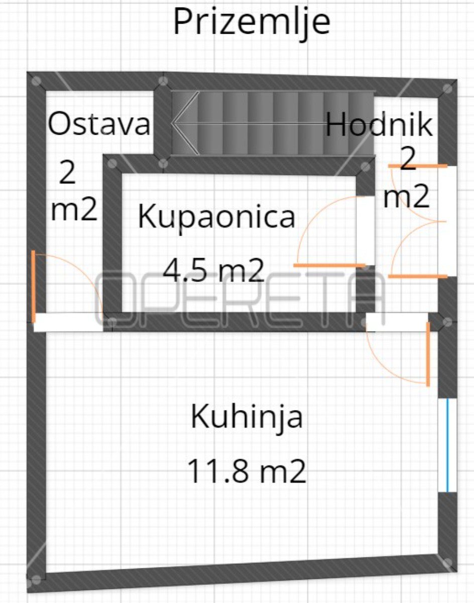 Kuća se sastoji od 4 etaže. U prizemlju se nalazi kuhinja, te kupaonica s tuš kabinom.