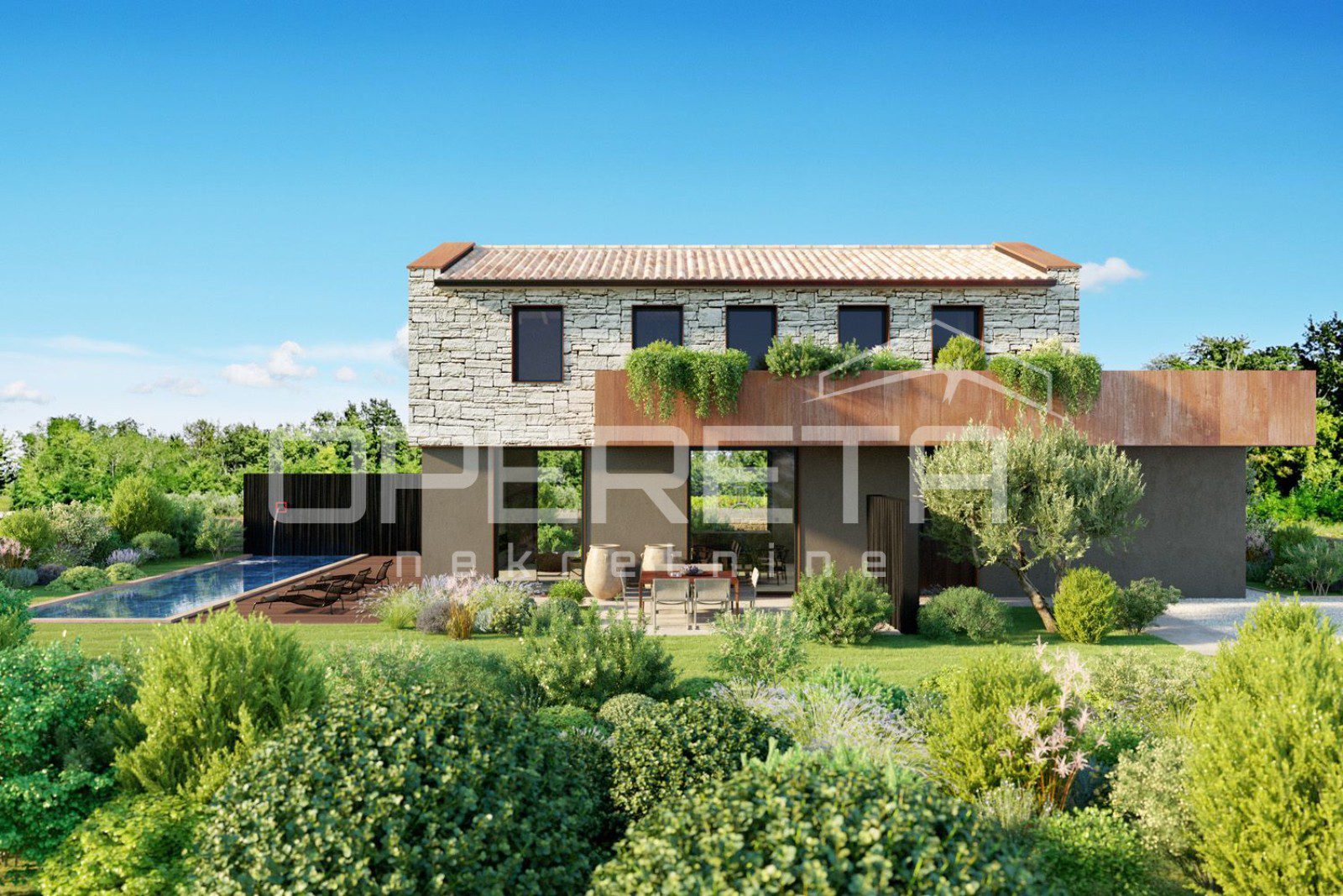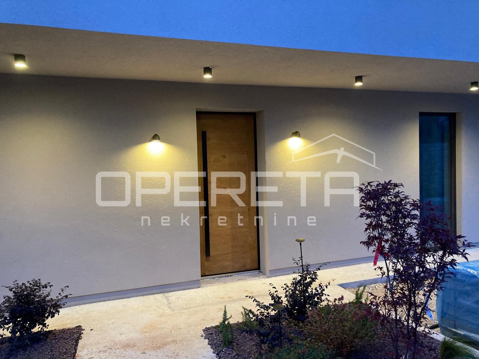 Smještena na parceli od 503 m², kuća površine 175 m² izvedena je prema projektu renomiranog arhitekta, s modernim dizajnerskim rješenjima i mediteranskim elementima poput kamene obloge na dijelu fasade, koji prostoru daje poseban šarm i autentičnost.