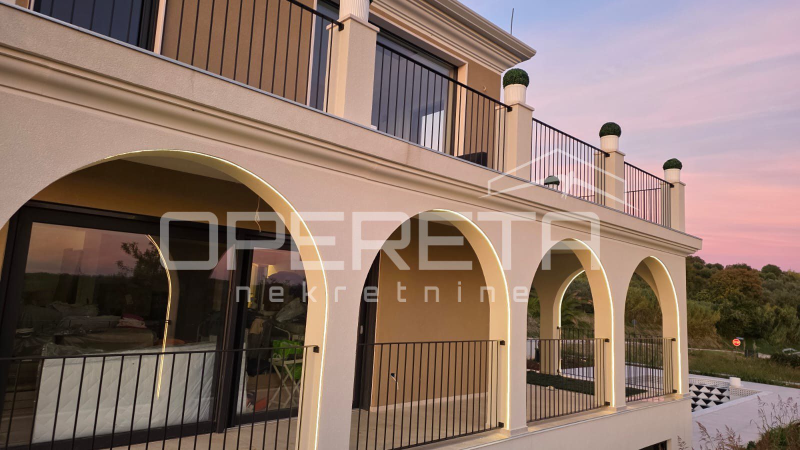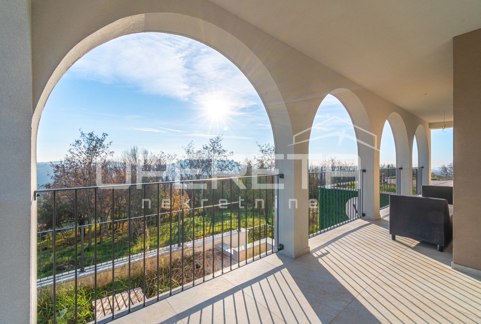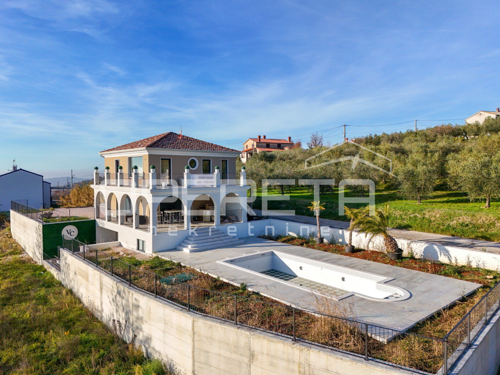 Smještena na južno orijentiranom brežuljku, ova izvanredna samostojeća vila nudi neometan panoramski pogled koji se proteže preko prostranih vinograda, blagih brežuljaka i sve do mora. Izgrađena na dvije etaže, uz potpuno donje razine, nekretnina kombinira profinjenu arhitekturu, luksuzne materijale i vrhunske sadržaje, stvarajući doista jedinstven dom.