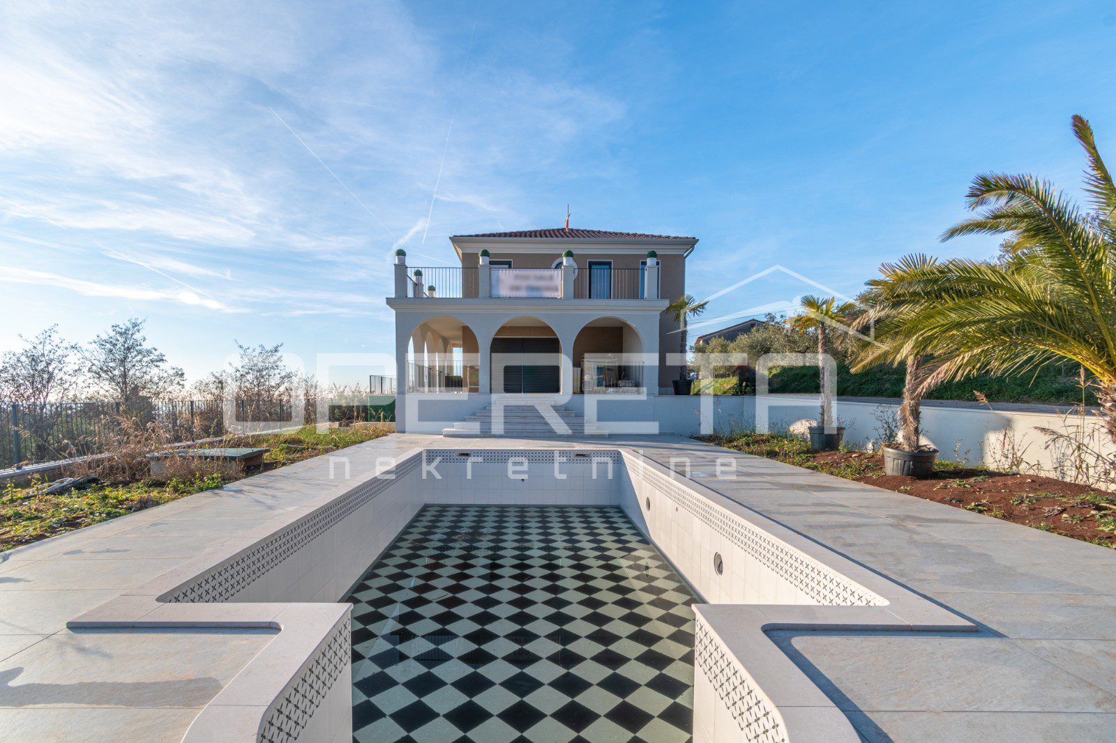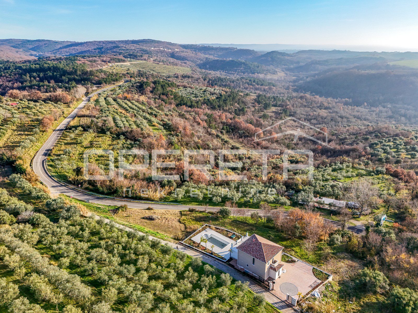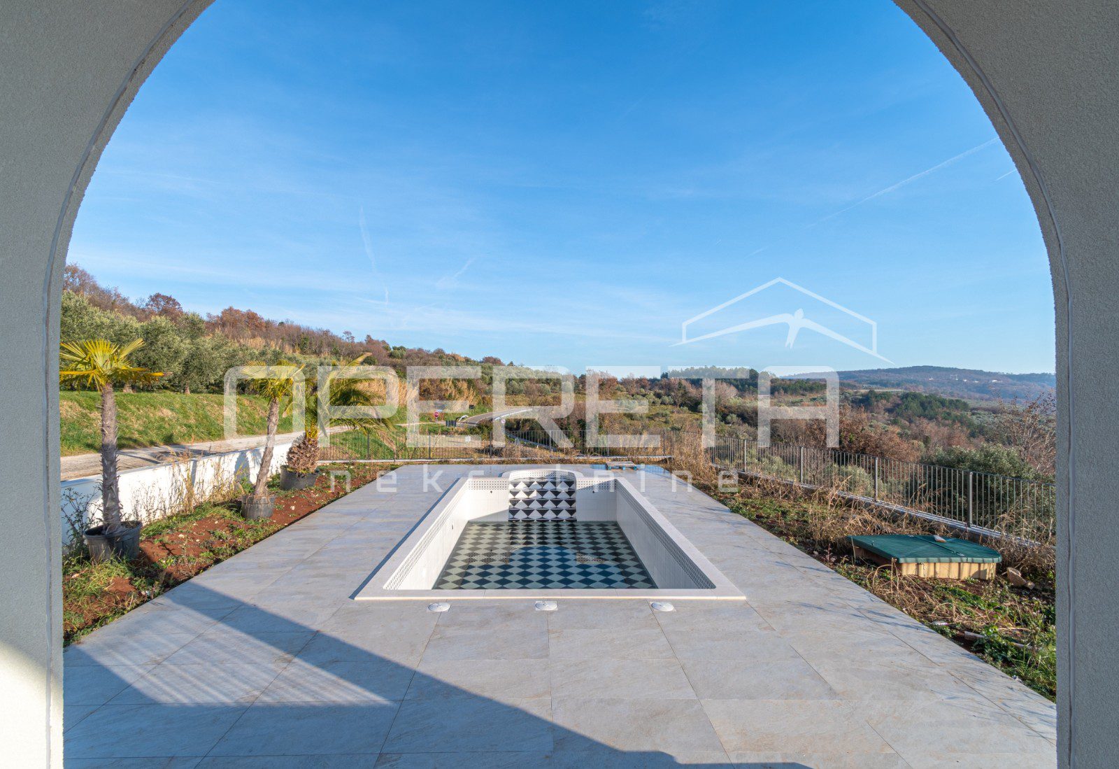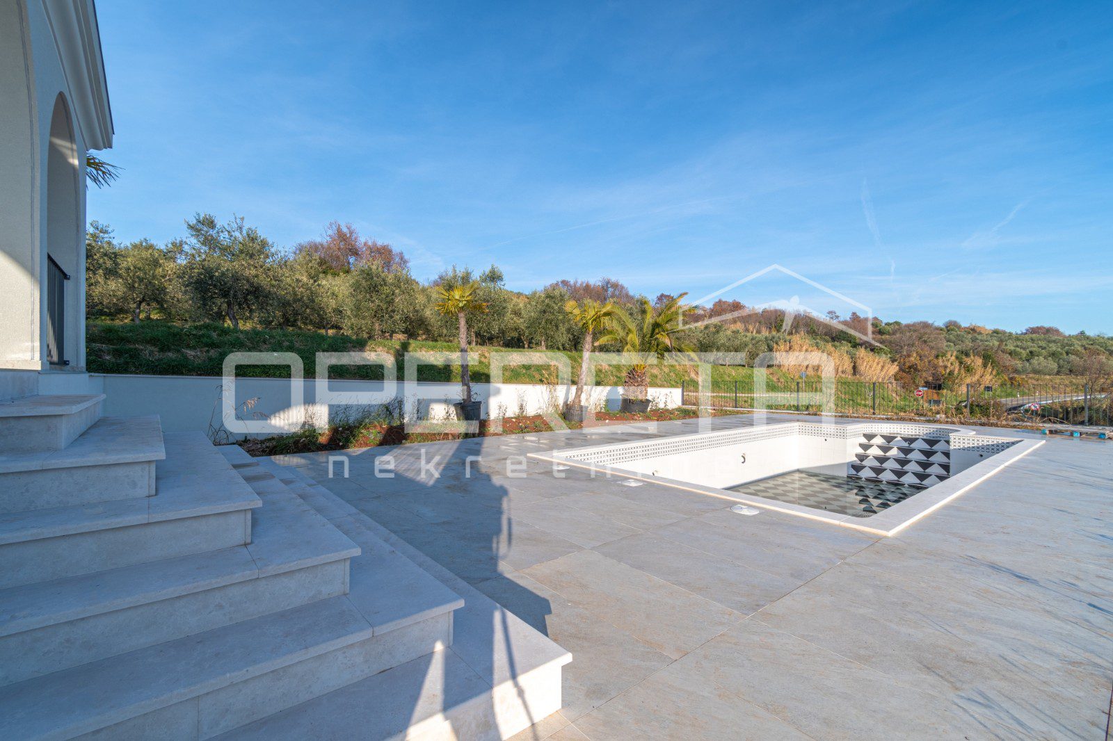 Smještena na južno orijentiranom brežuljku, ova izvanredna samostojeća vila nudi neometan panoramski pogled koji se proteže preko prostranih vinograda, blagih brežuljaka i sve do mora. Izgrađena na dvije etaže, uz potpuno donje razine, nekretnina kombinira profinjenu arhitekturu, luksuzne materijale i vrhunske sadržaje, stvarajući doista jedinstven dom.