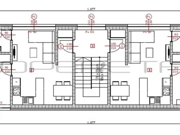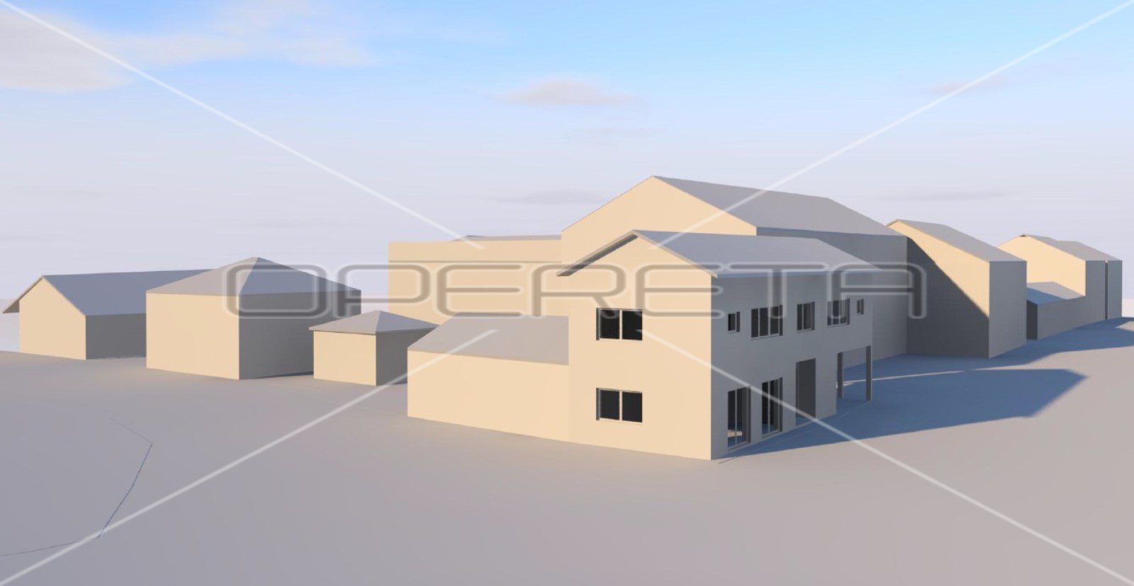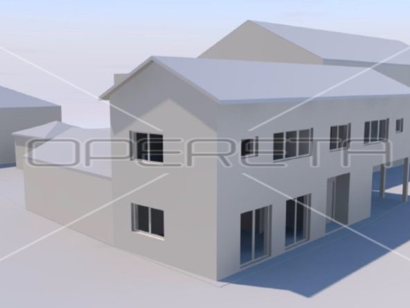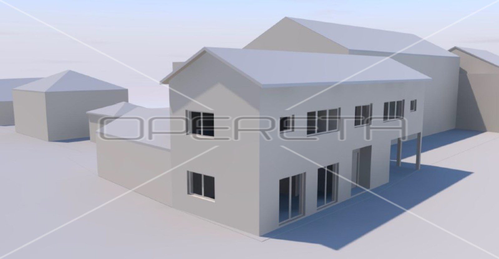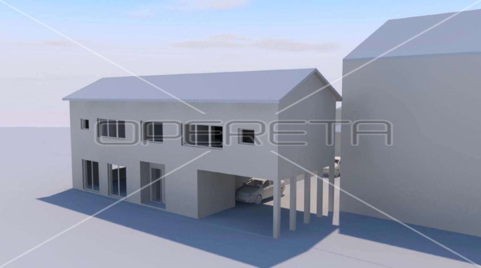 Idejni projekt obuhvaća poslovni prostor u prizemlju površine 40,84 m2 kao i dva manja dvosobna stana od 40,53 m2. Za svaki stan je zamišljena i galerija u potkrovlju koja će dodatno doprinijeti većem dojmu stanova. Predviđeno je 5 parkirališnih mjesta.