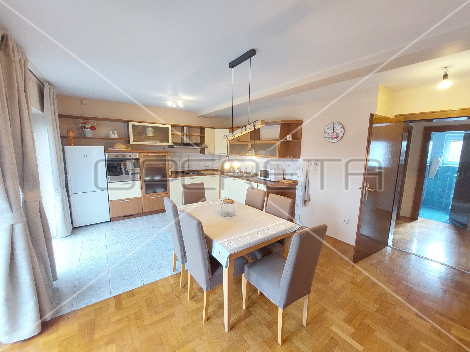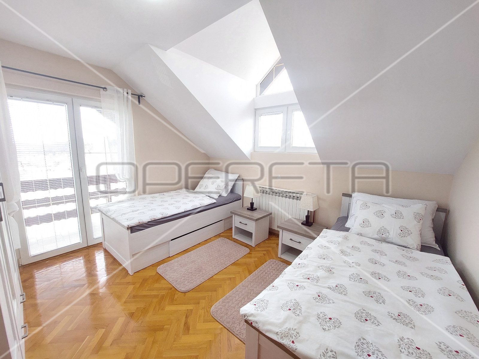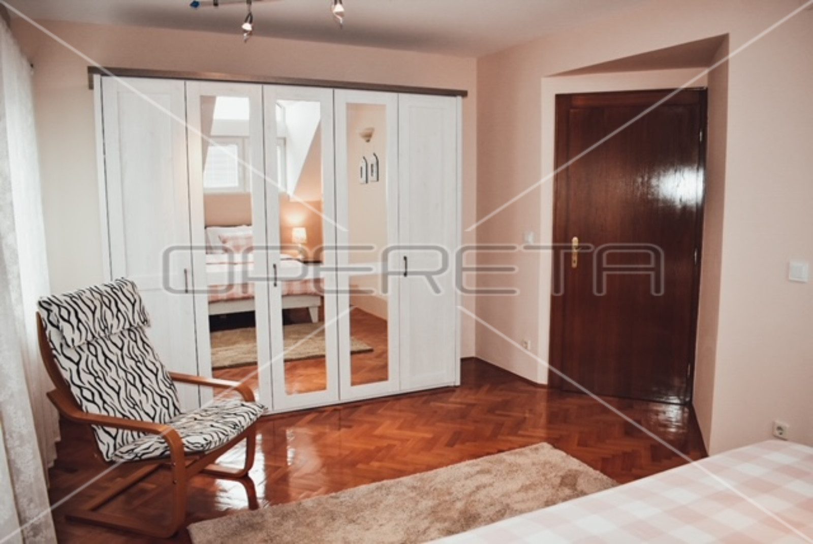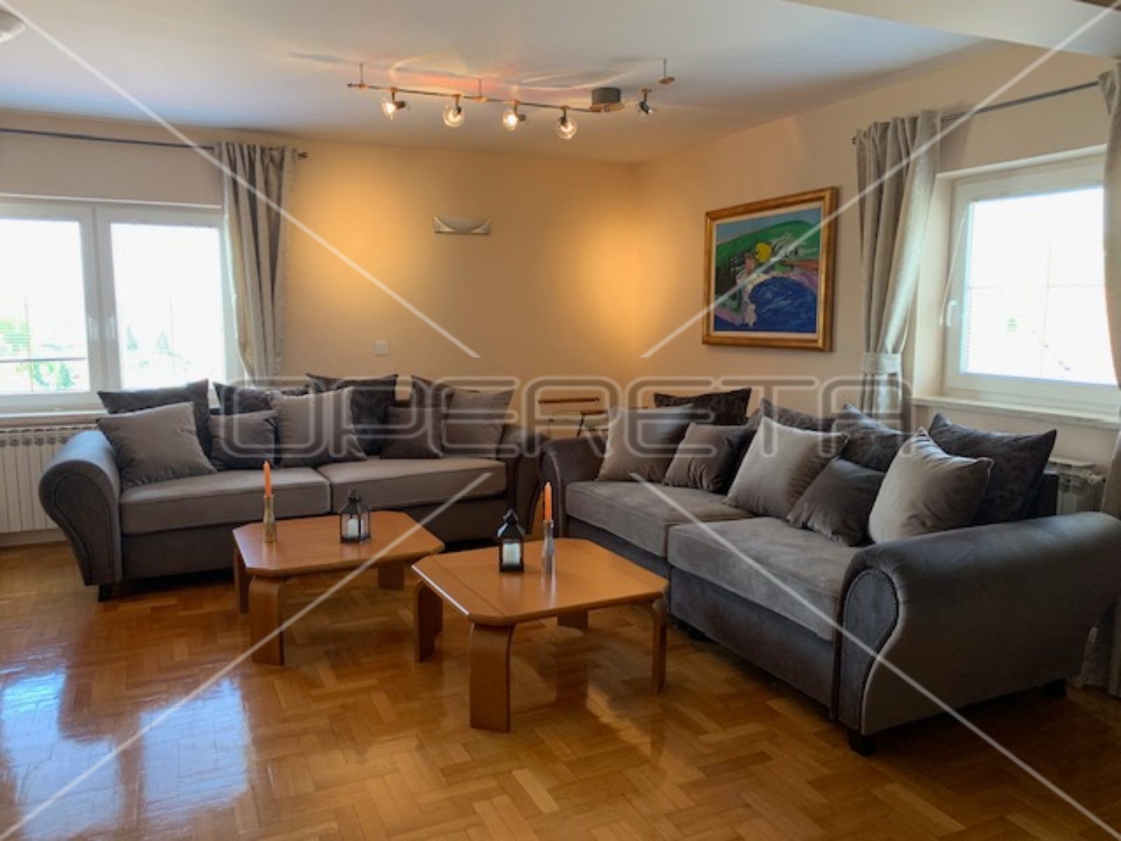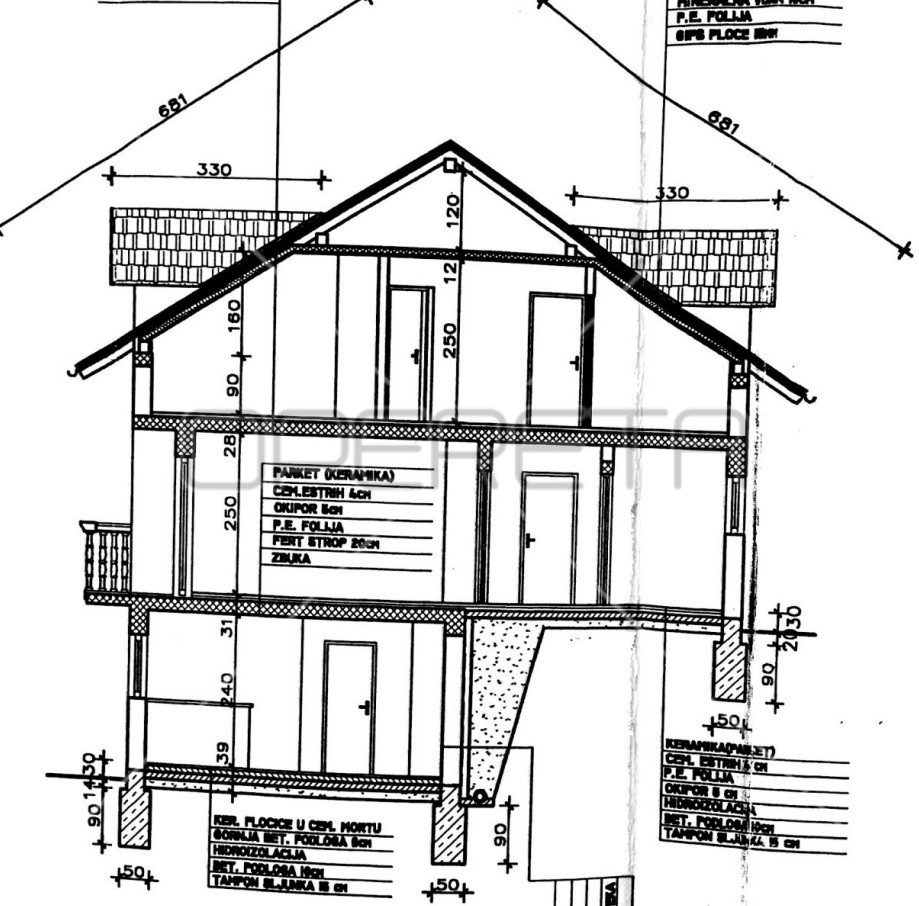 Raskošna kuća na proplanku, prodaje se potpuno opremljena i odlična je prilika za kvalitetan život ili turistički najam. Proteže se na 3 etaže: u prizemlju se nalazi prostorija za druženje na 52m2 s wc-om i izlazom na terasu na kojoj je kamin. Tu je također kotlovnica i dupla garaža. Na 1. katu je open space dnevni boravak s blagovaonicom i kuhinjom, jedna soba, kupaonica s tuš kabinom i wc-om i 124 m2 natkrivene terase. Na 2. katu je 5 soba i kupaonica s kutnom kadom i wc-om, a sobe imaju izlaze na balkone. Prekrasna priroda podno Medvednice, kući pripada voćnjak i 11.000 m2 građevinskog zemljišta. Na minutu od Termi Jezerčica i Stubičkih toplica, nešto više od pola sata od Zagreba,