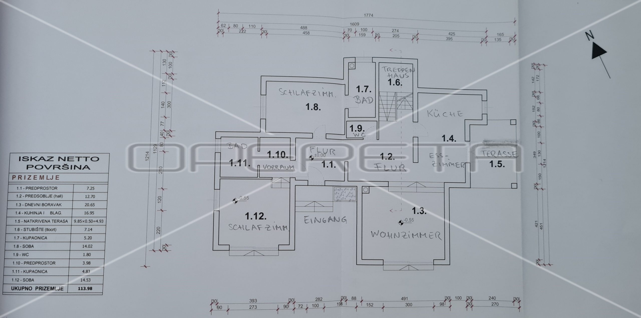 Kuća se prostire kroz suteren, prizemlje i 1.kat.