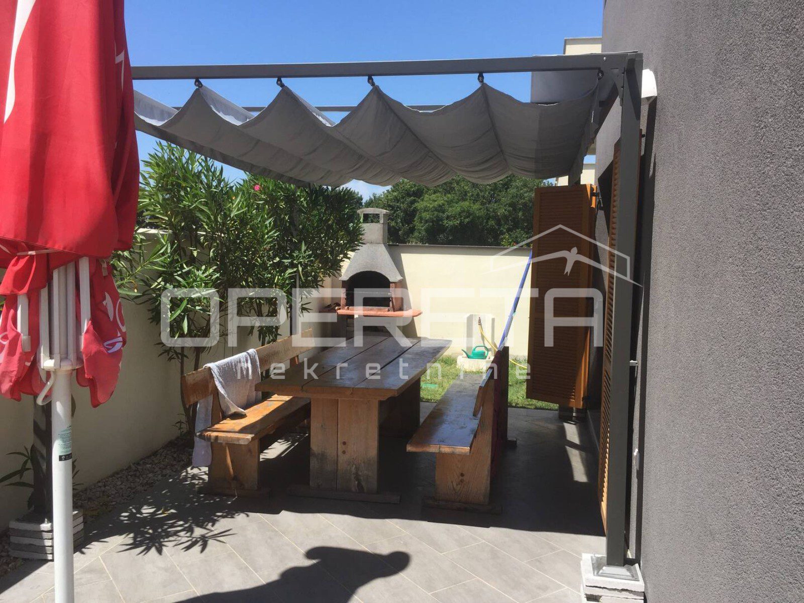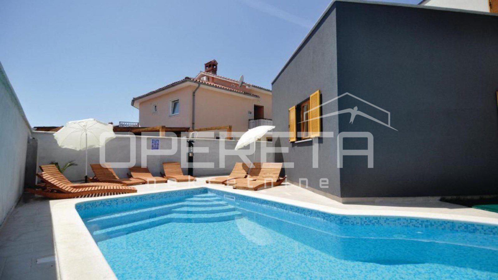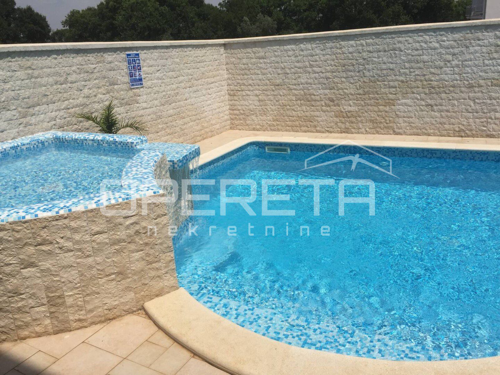 Vanjski dio čini bazen sa sunčalištem, roštilj, prostor za druženja i uređen vrt.