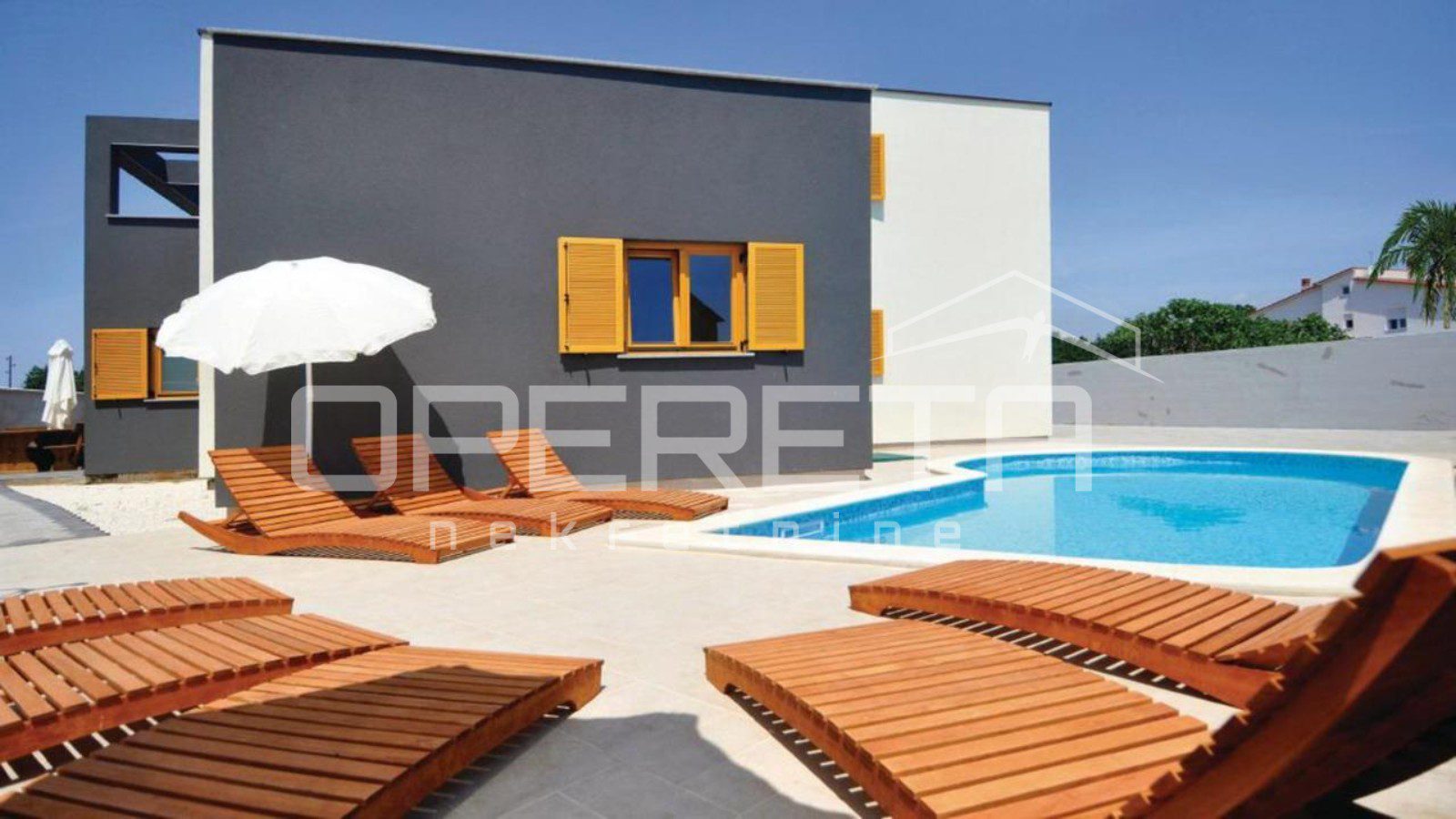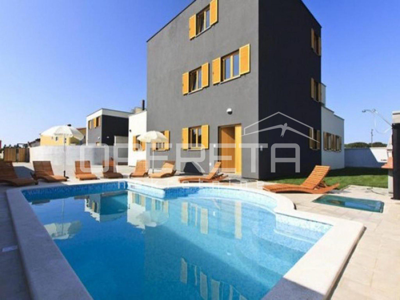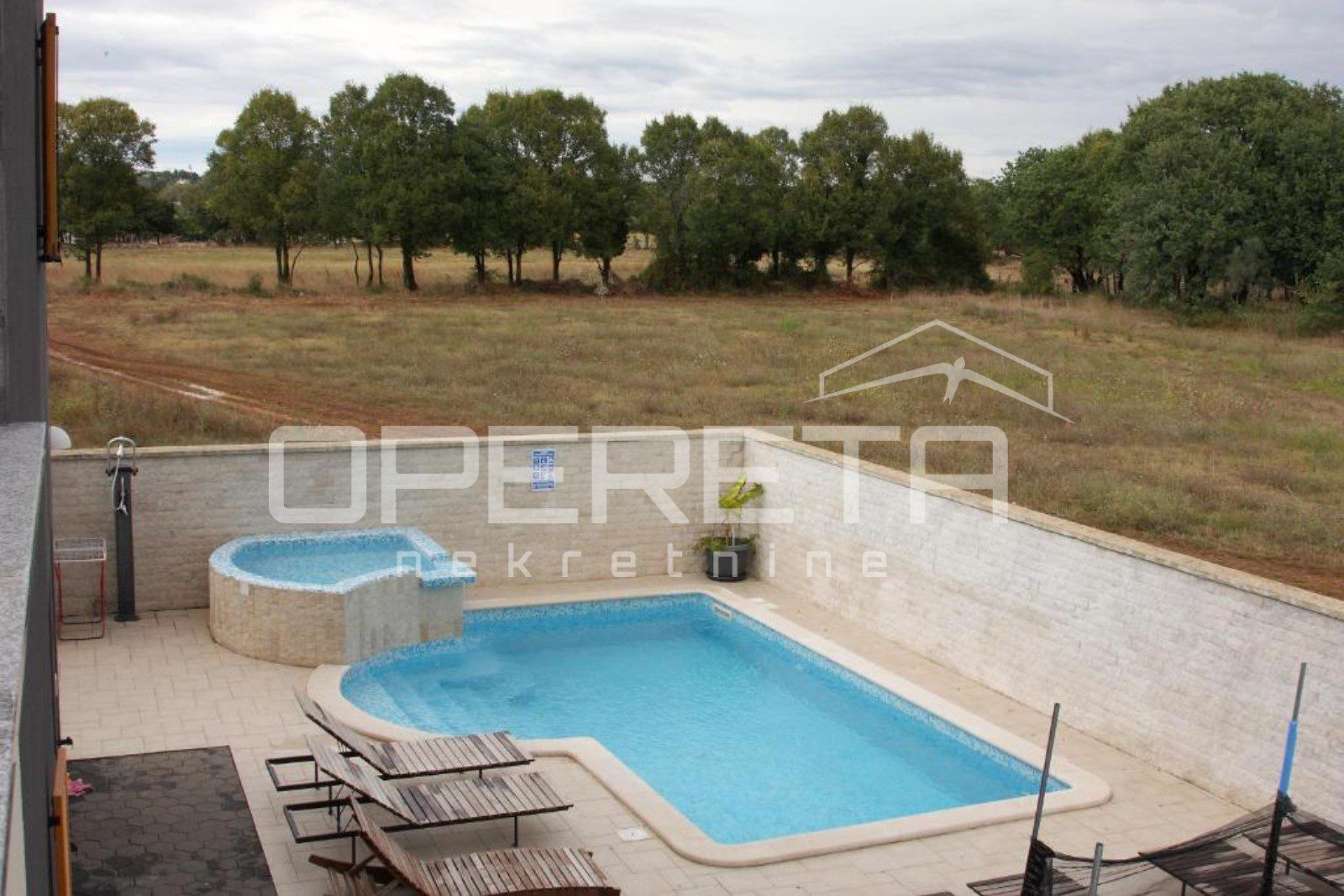 Vanjski dio čini bazen sa sunčalištem, roštilj, prostor za druženja i uređen vrt.