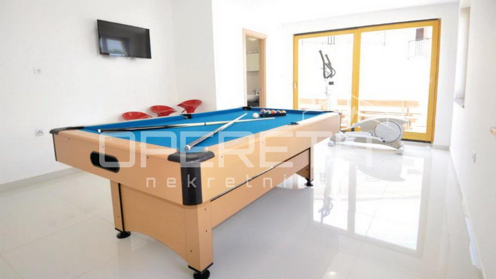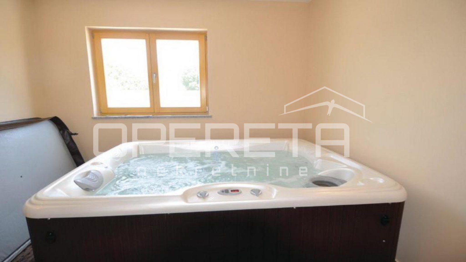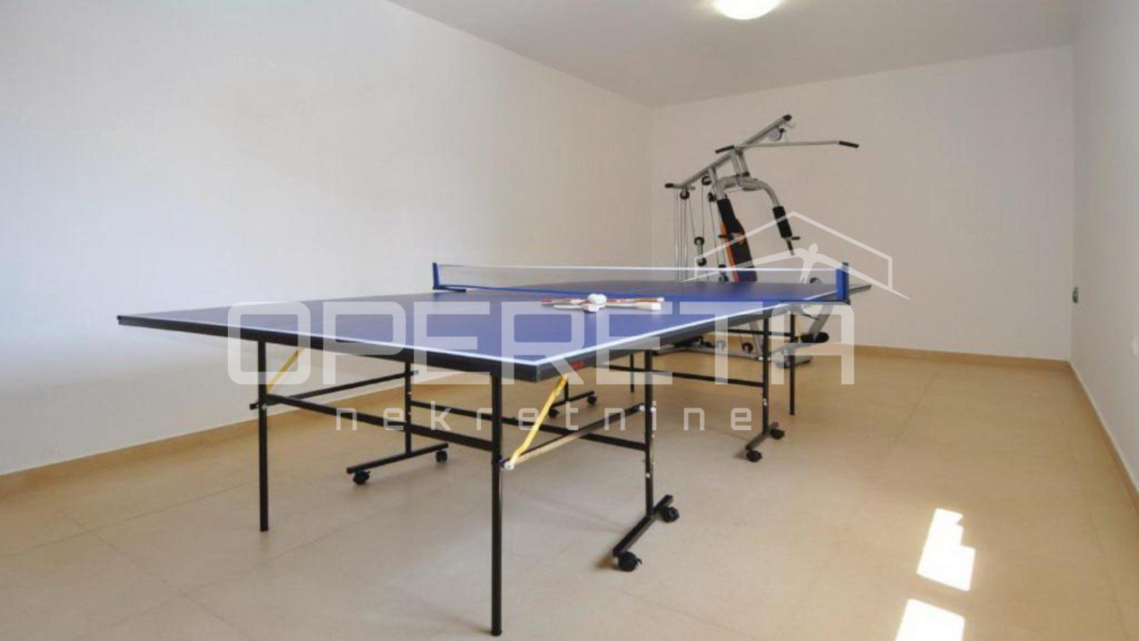 U prizemlju se nalazi hodnik, tri spavaće sobe od kojih jedna ima vlastitu kupaonicu, dodatna kupaonica, spa prostor sa saunom i jacuzzijem, igraonica.