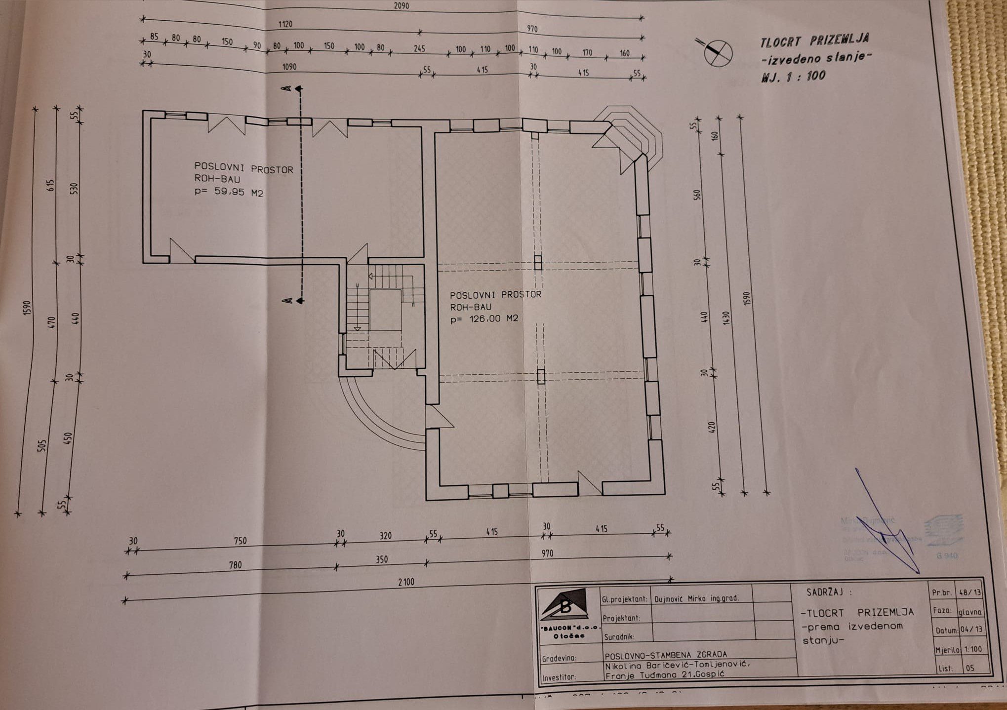 * Veći poslovni prostor – 130 m² u roh bau stanju, prilagodljiv raznim djelatnostima
