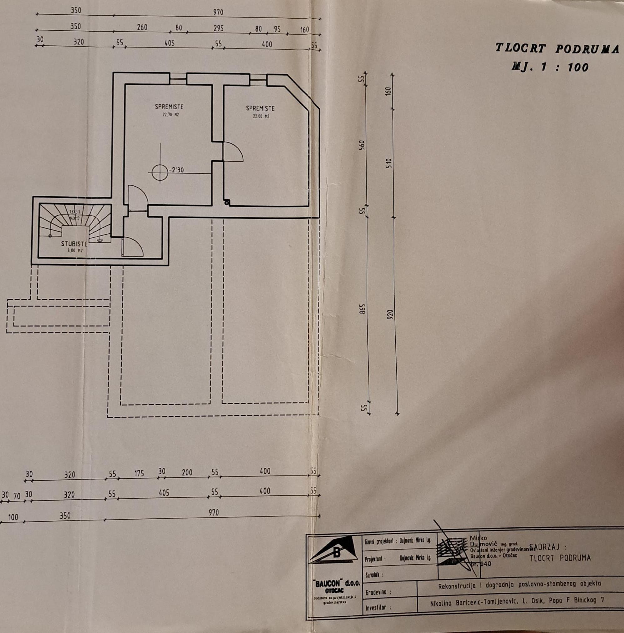 * Mogućnost povezivanja podruma s poslovnim prostorom iznad (130 m²)