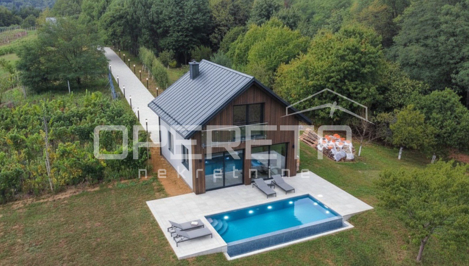 Na prodaju je kuća površine 135 m2 na zemljištu površine 3.755 m2, smještena uz vinograd, voćnjak i šumu.