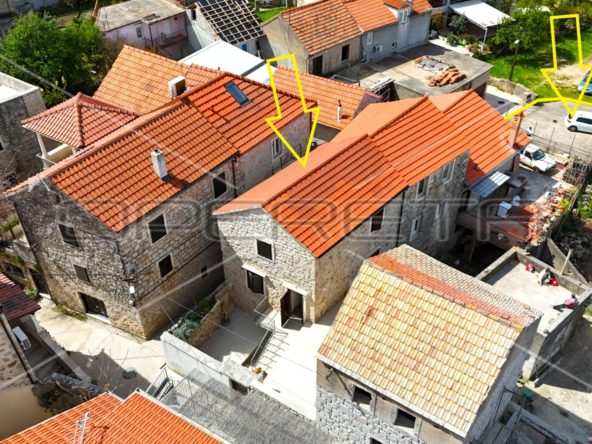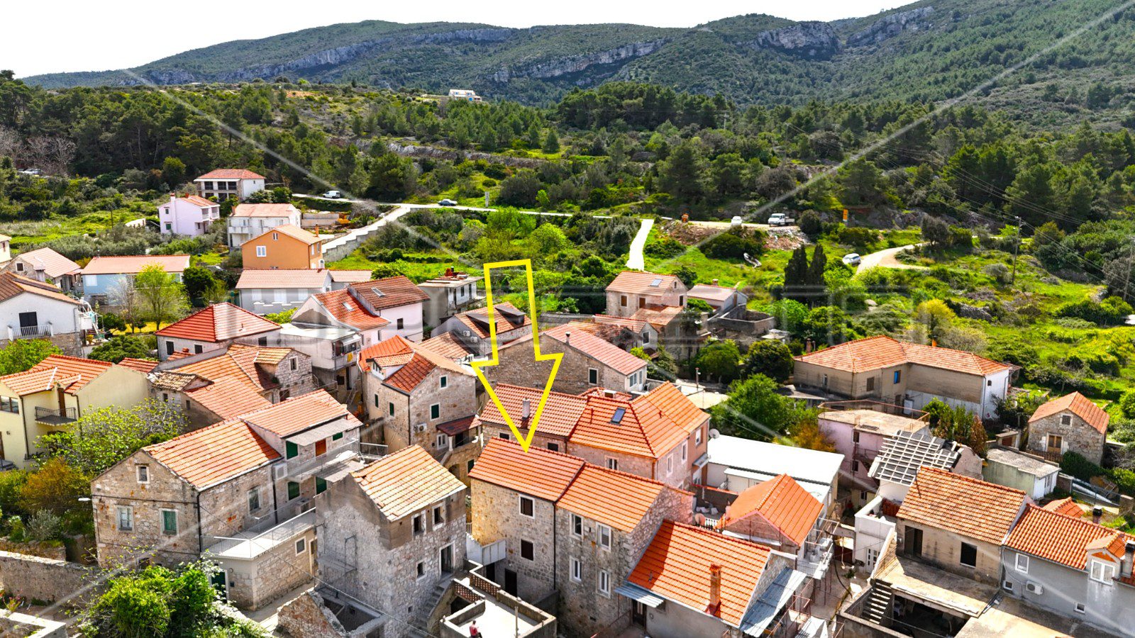 Na otoku Hvaru, u širem centru Jelse, smještena je poluugrađena kuća neto stambene površine od 100 m2 na parceli od 103 m2.