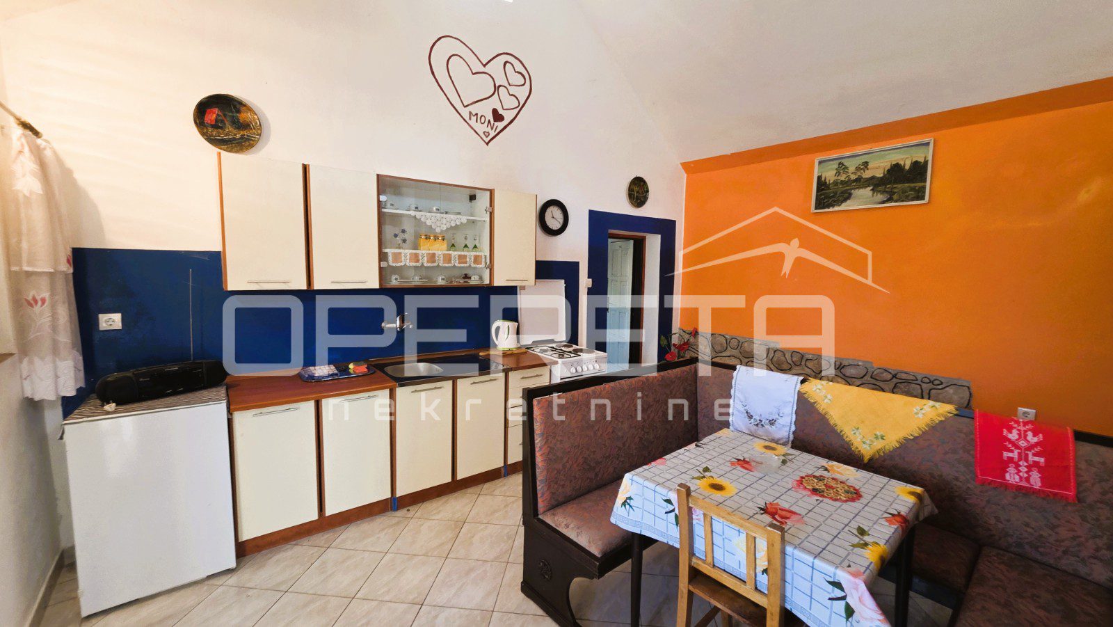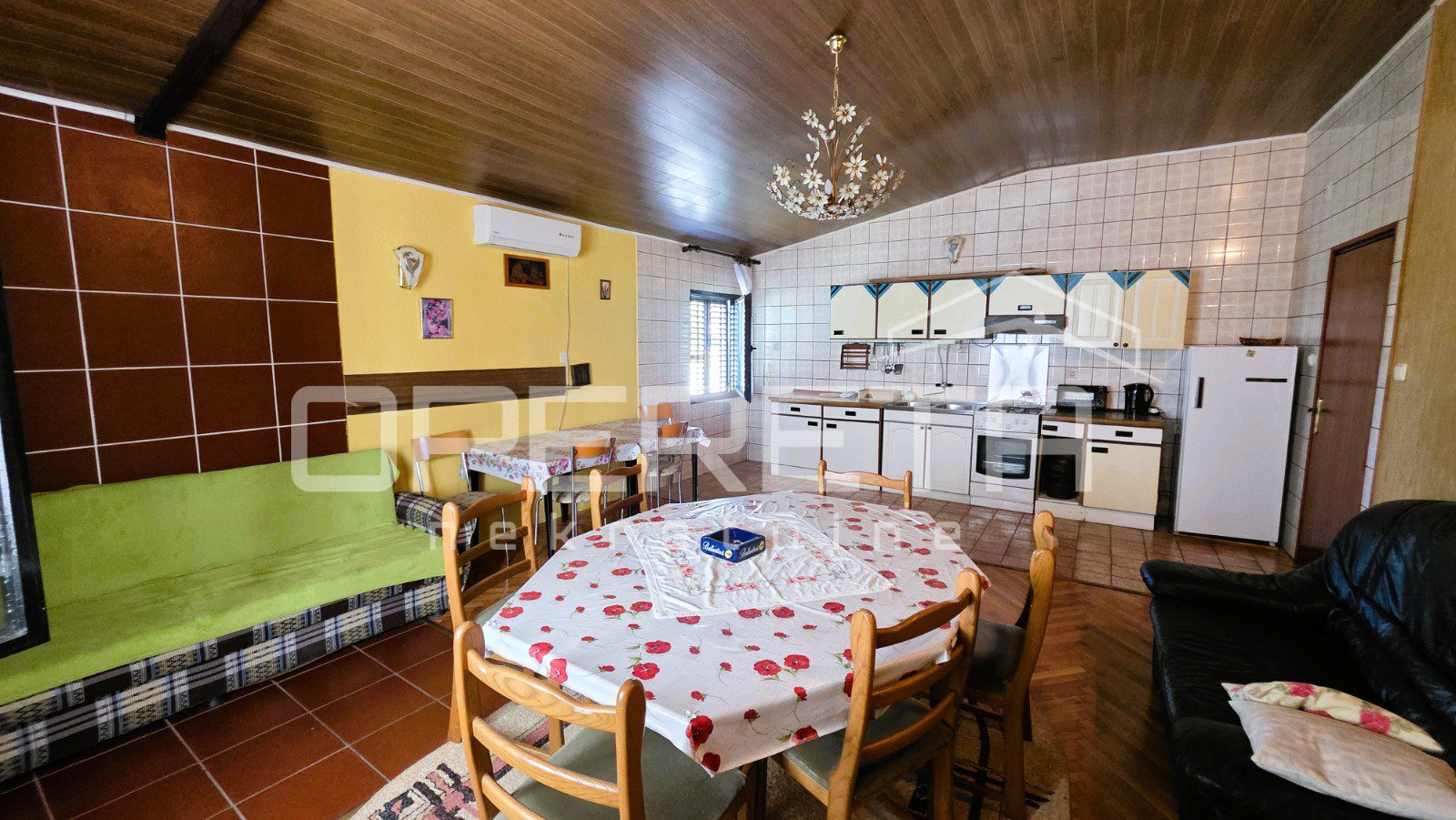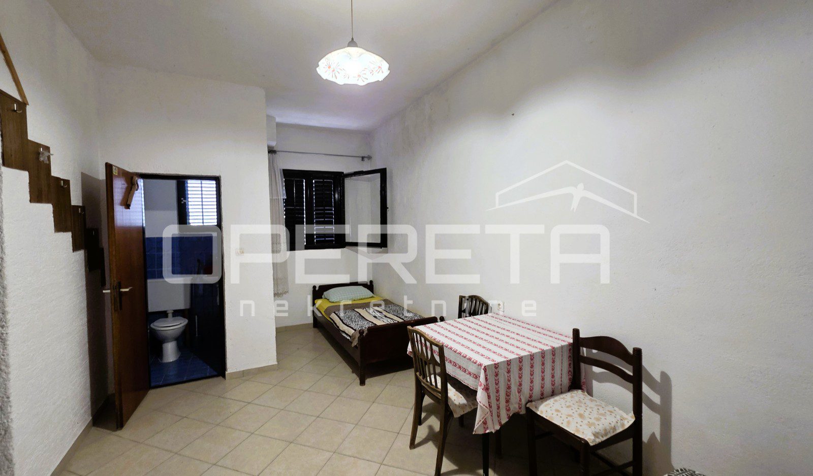 U mjestu Karlobag u neposrednoj blizini mora prodaje se kuća s pomoćnim objektom ukupne površine 330m2 na parceli površine 530m2.