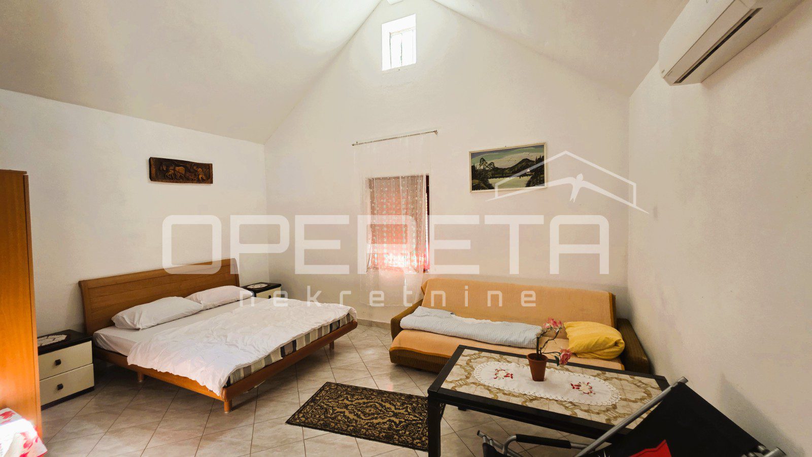 Na parceli se nalazi glavna kuća (292m2) koja se sastoji od 3 etaže, te samostalni pomoćni objekt (38m2) koji je u funkciji dodatnog apartmana.