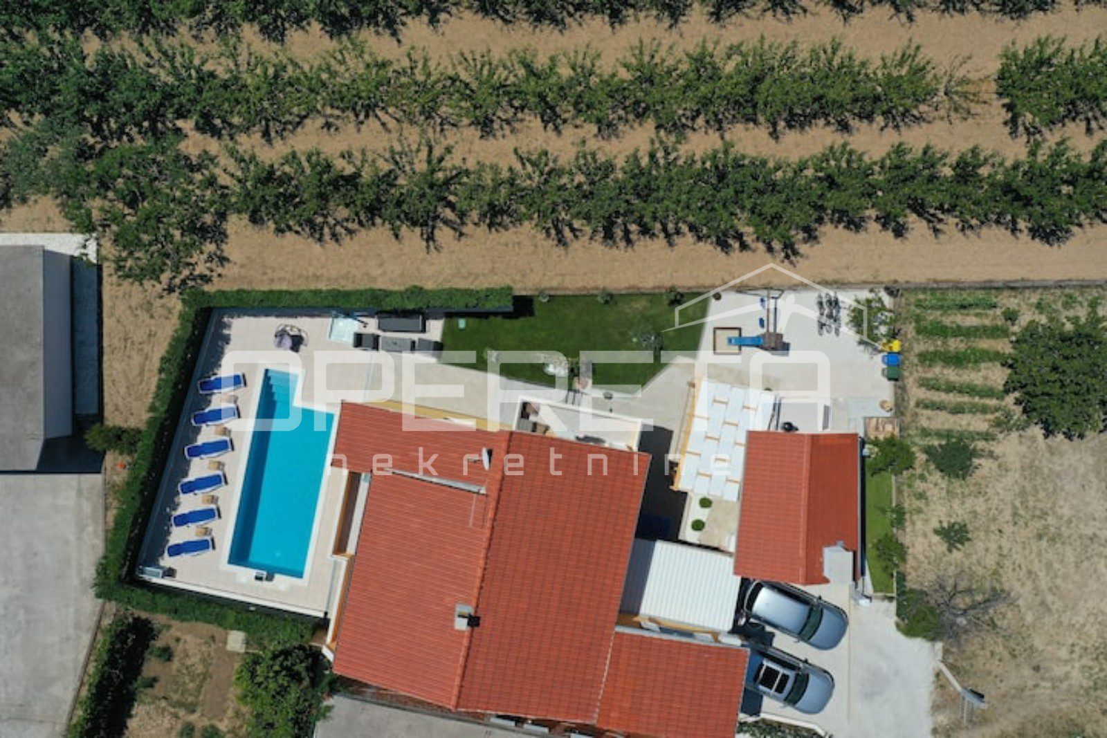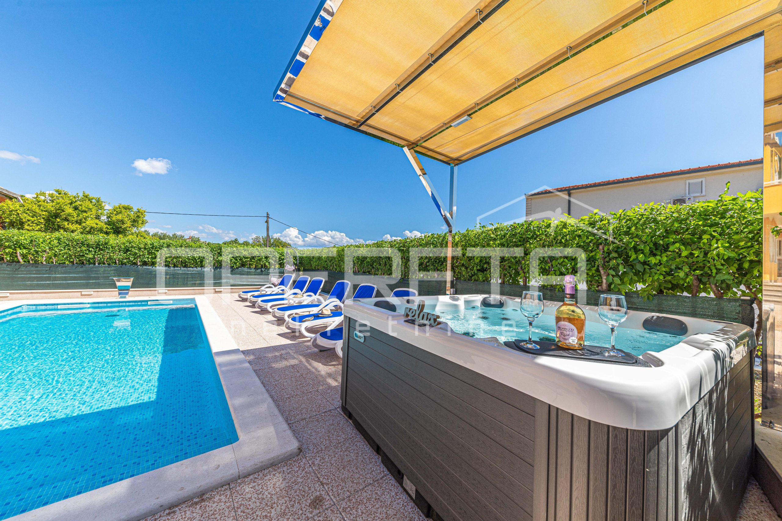 Vila se prostire na 260 četvornih metara stambene površine raspoređene na dvije etaže, dok okućnica od 286 četvornih metara nudi potpuno uređen vanjski prostor s prostranim i modernim bazenom, sunčalištem i pomoćnim objektom. Dizajnirana je kao dvije odvojene stambene jedinice s posebnim ulazima, što omogućuje fleksibilnost korištenja i idealno rješenje za višečlanu obitelj ili turistički najam s visokim povratom ulaganja.