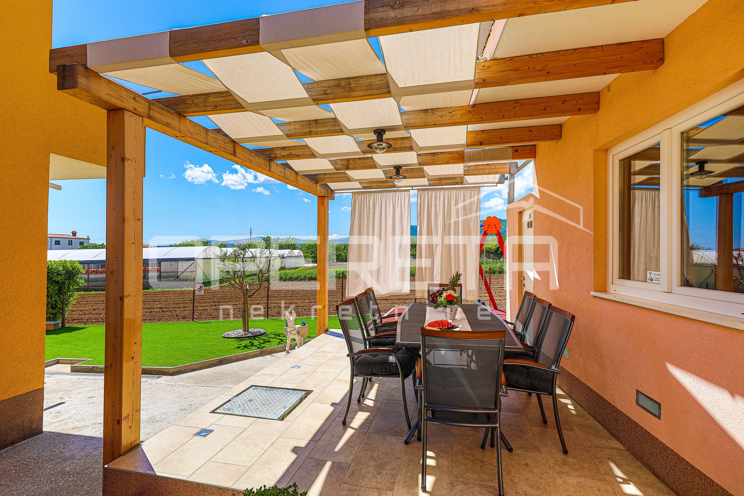 Vila je potpuno klimatizirana, moderno namještena i opremljena za cjelogodišnje korištenje. Uz garažu i tri vanjska parkirna mjesta, nudi visoku razinu komfora i praktičnosti.