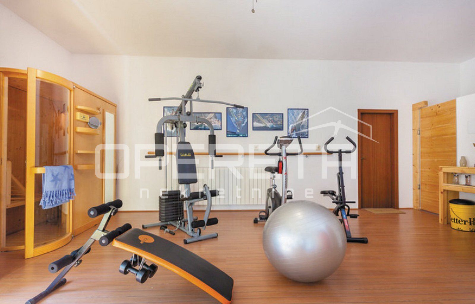 Vila ukupne stambene površine 280 m² prostire se na tri etaže i projektirana je s naglaskom na kvalitetu života. Prizemlje je zamišljeno kao wellness zona – s jacuzzijem, saunom, teretanom i prostorom za biljar, što vlasnicima pruža mogućnost potpunog opuštanja bez napuštanja doma. Ova razina prostora može se po želji prenamijeniti u rekreacijsku ili hobi zonu, a idealna je i za dodatne sadržaje poput kućnog kina ili prostora za fitness.