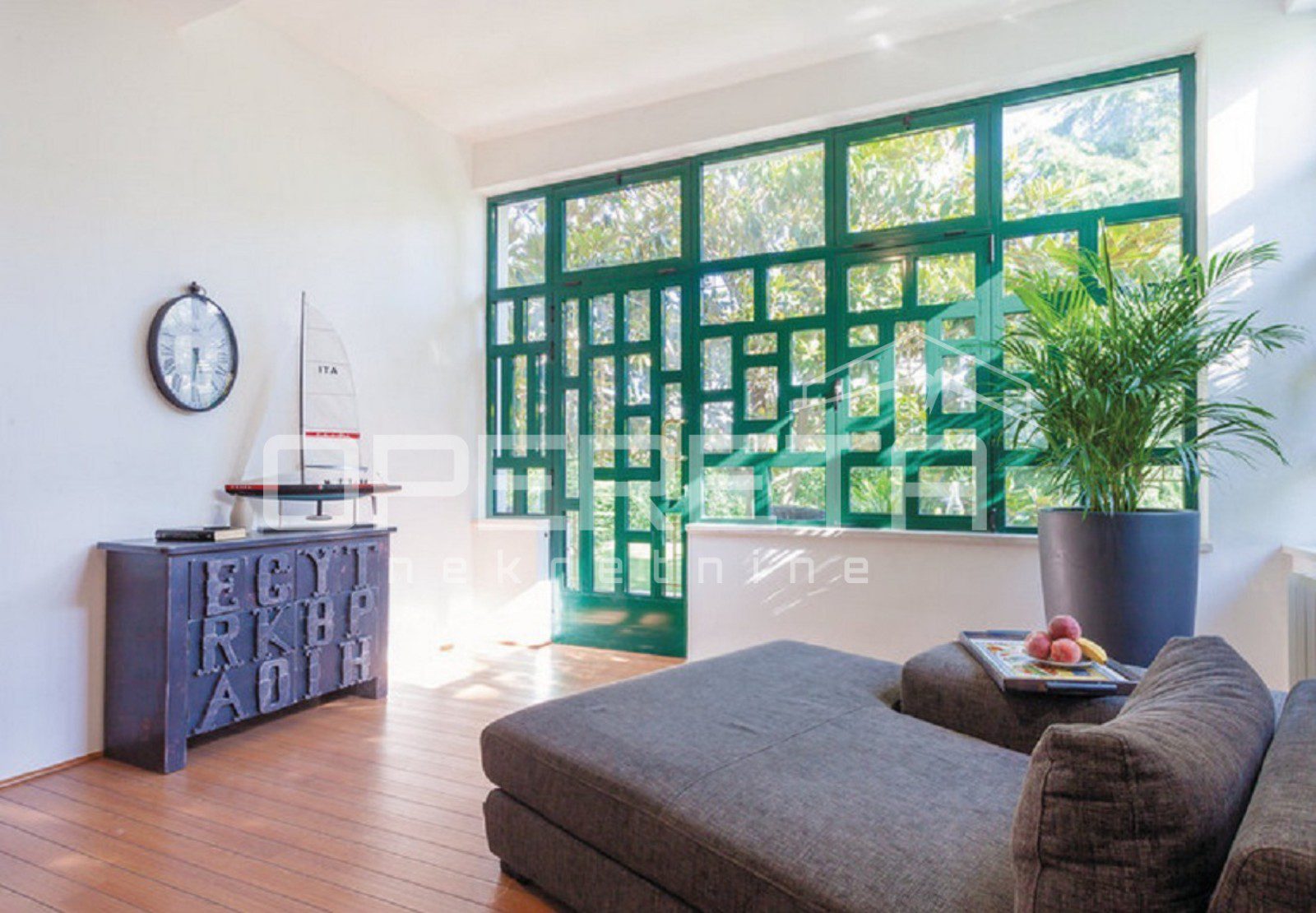 Okućnica je prostrana i pažljivo uređena, s velikim travnjakom, mediteranskim biljem i vanjskim kaminom koji čini središte zone za druženje. Postoji mogućnost ugradnje bazena, čime bi vila dodatno dobila na vrijednosti i turističkoj atraktivnosti.