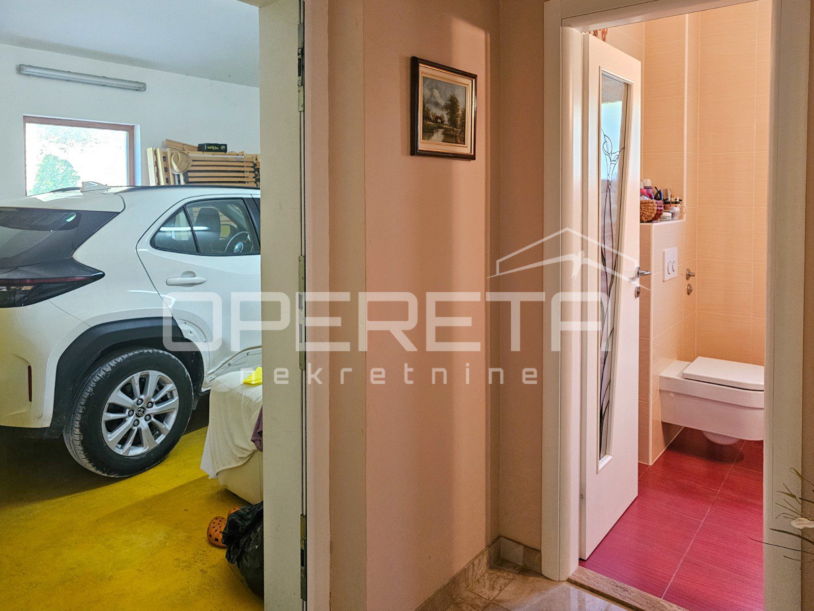 Garaža s direktnim ulaz iz kuće, dovoljno je prostrana za automobil i za odlaganje stvari.