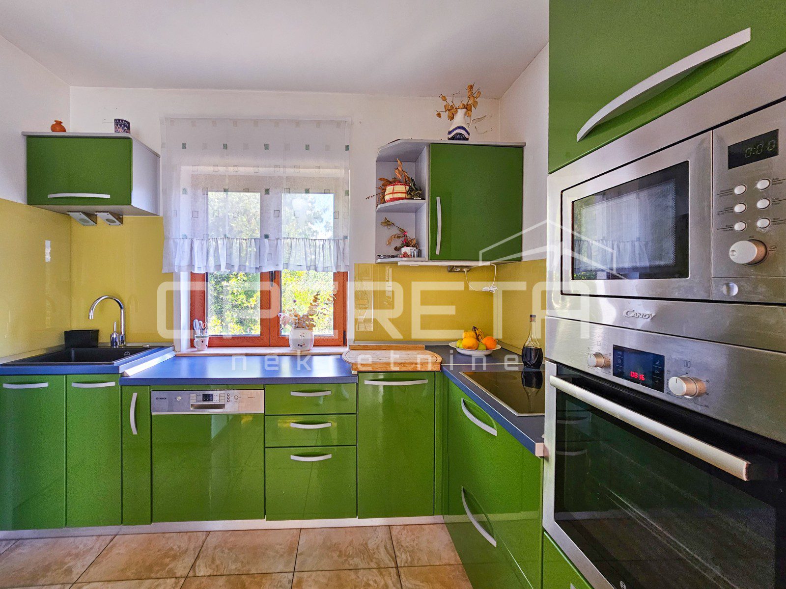 Kuhinja je potpuno opremljena i funkcionalna, a njezin dodatak je velika kuhinjska ostava.