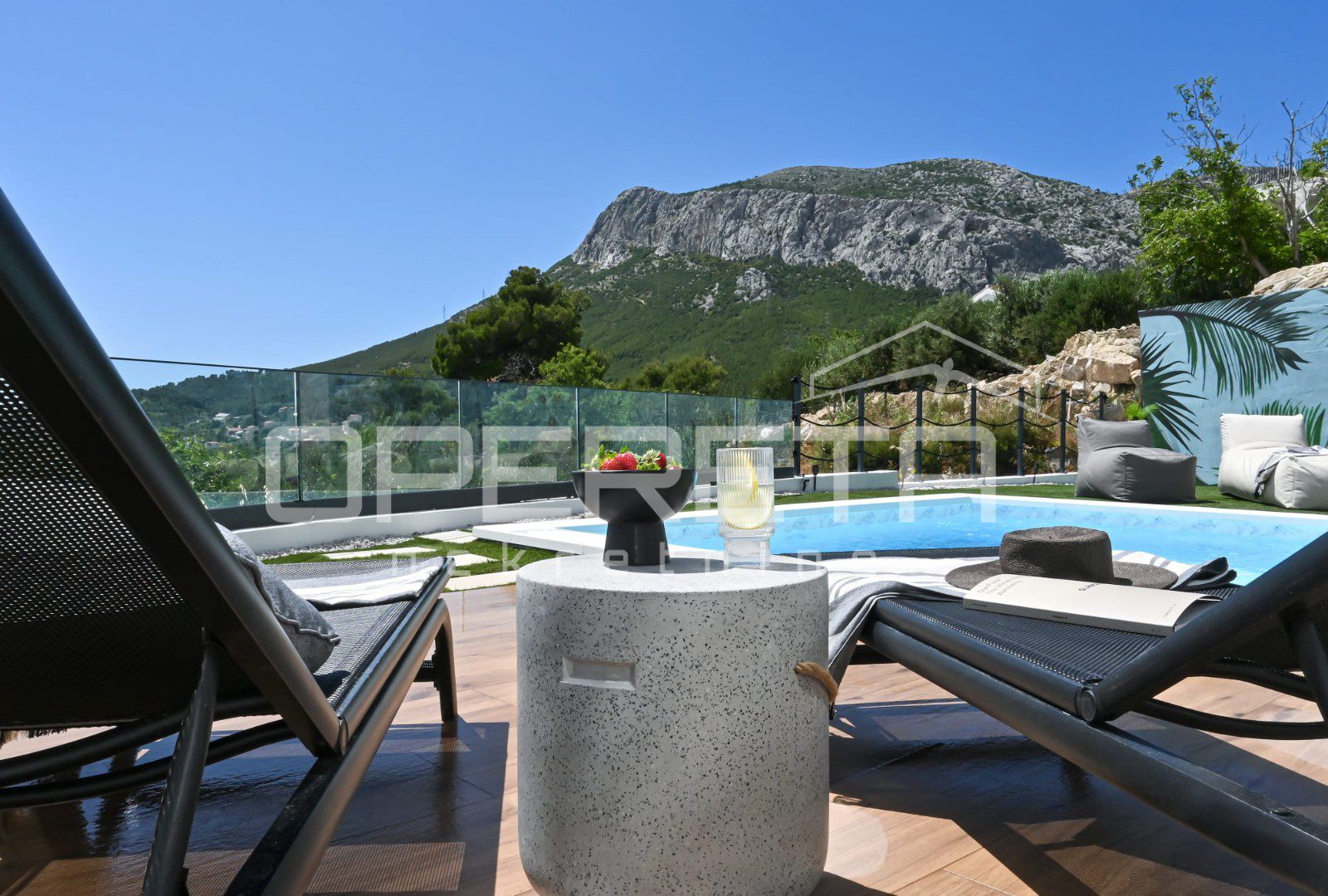 Vanjski prostor-grijani bazen sa sustavom za protustrujno plivanje, ljetna kuhinja s pergolom okružena maslinama, sunčalište s vrtnim ležaljkama, otvoreni pogled i potpuna privatnost.