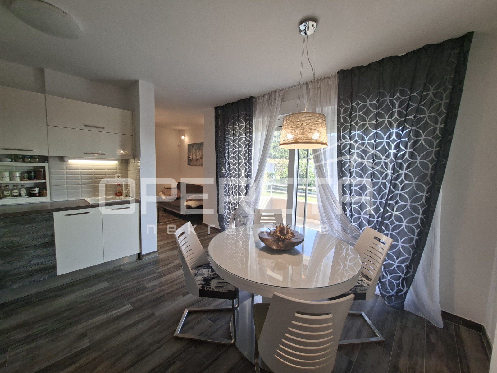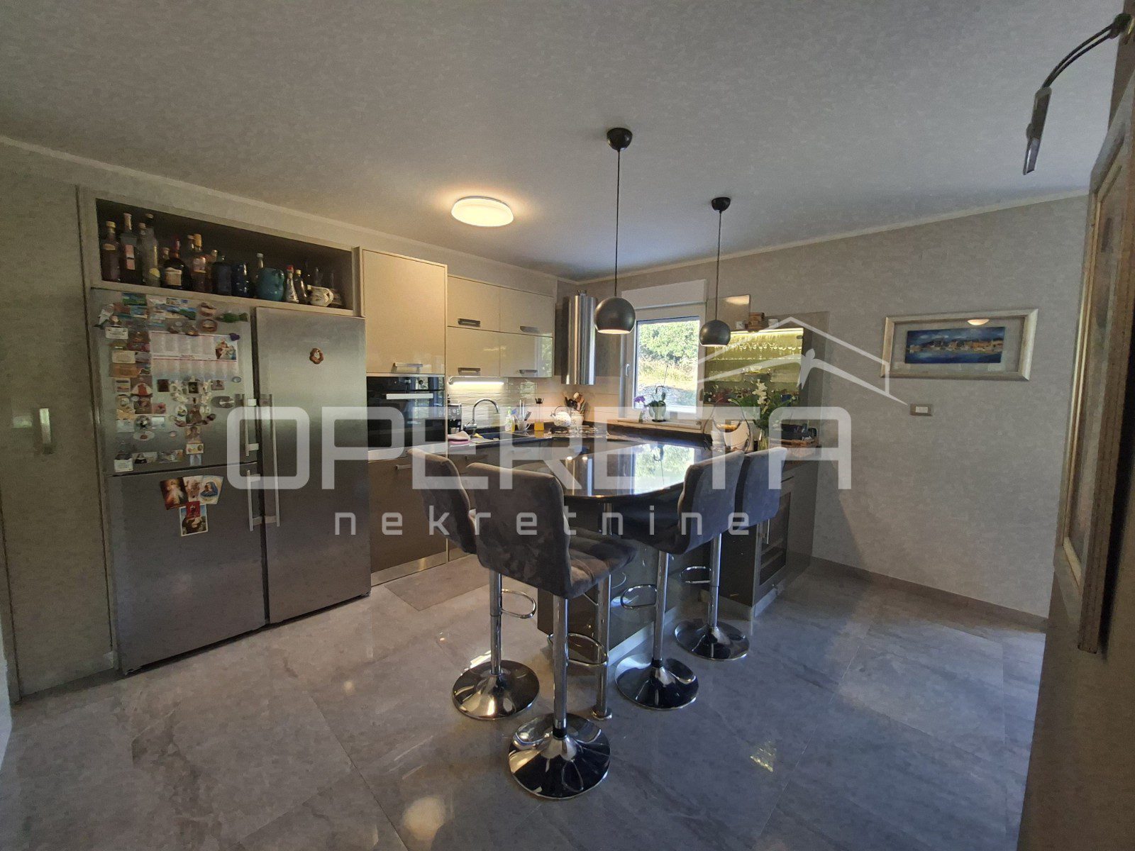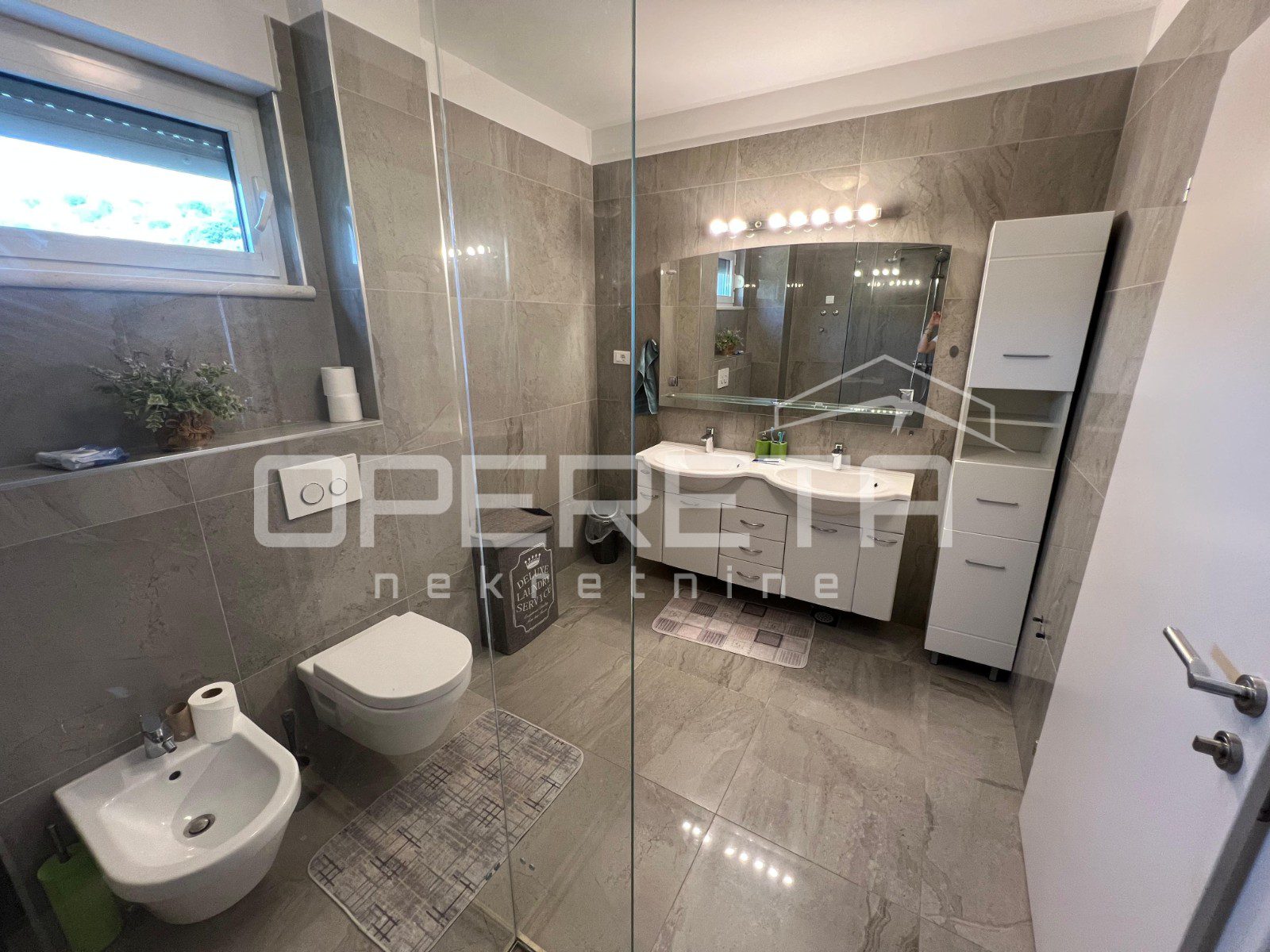 Prizemlje skriva udoban jednosobni stan, idealan za goste ili kao zasebna jedinica, koji se sastoji od prostrane spavaće sobe, kupaonice, te otvorenog dnevnog prostora s kuhinjom i blagovaonicom. Ovaj dio kuće odiše toplinom i funkcionalnošću, pružajući savršen kutak za opuštanje.