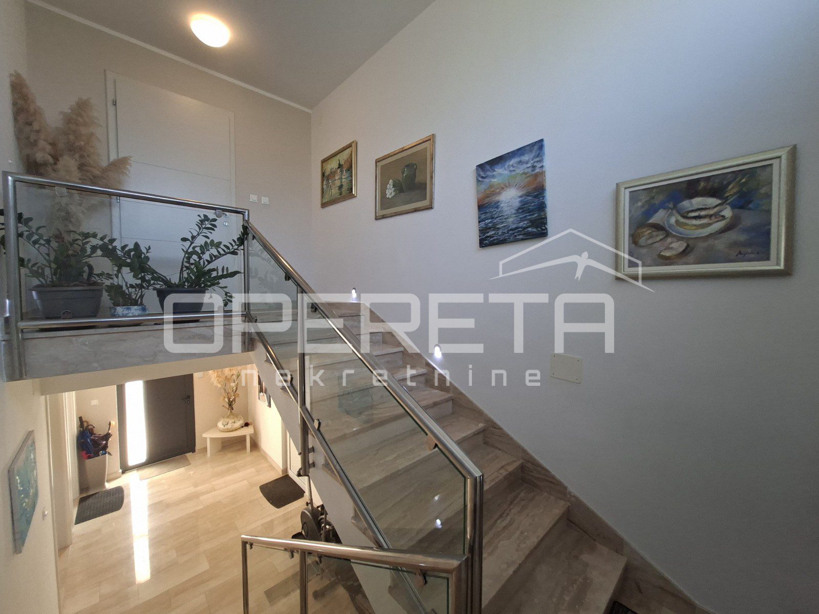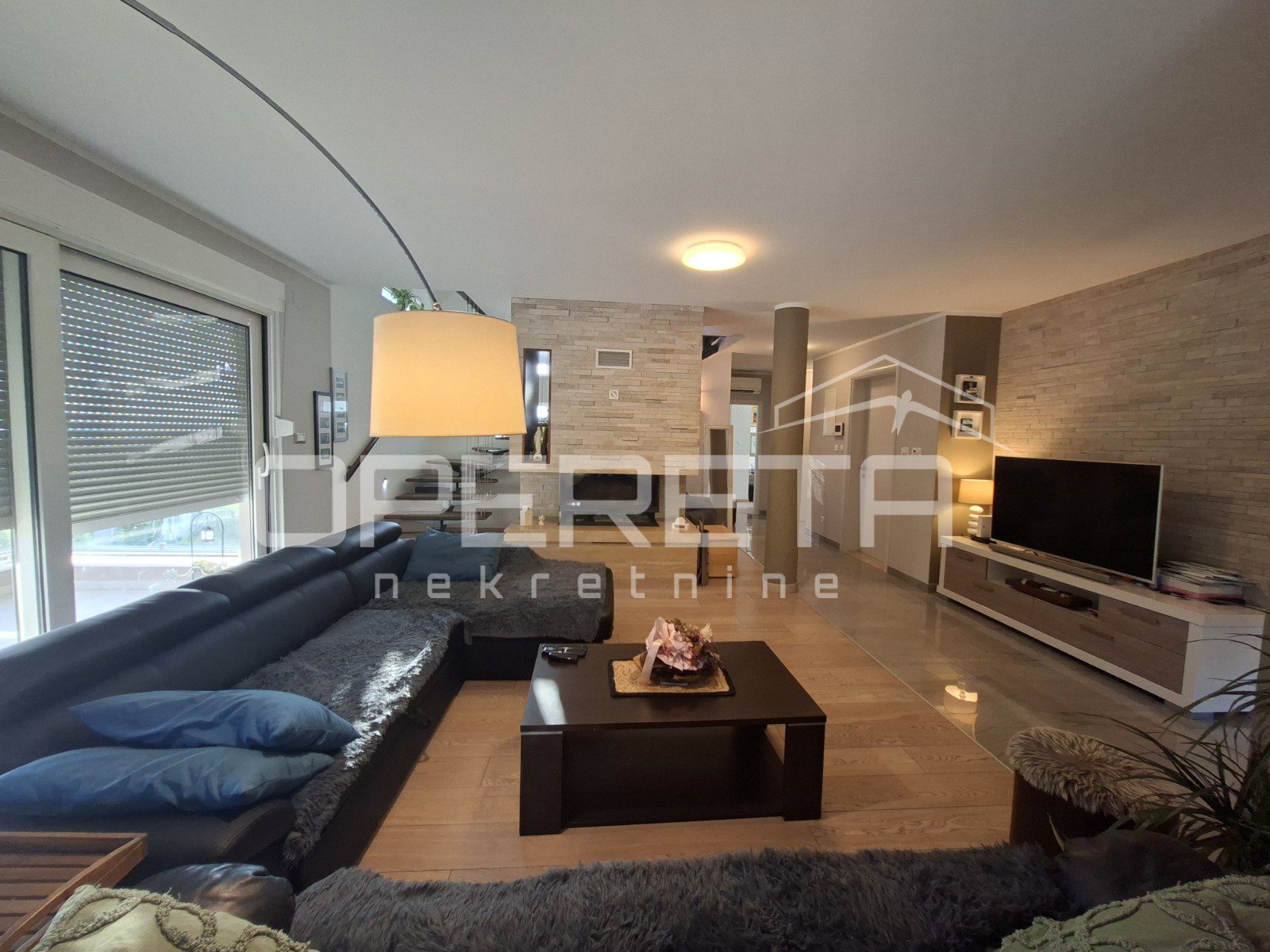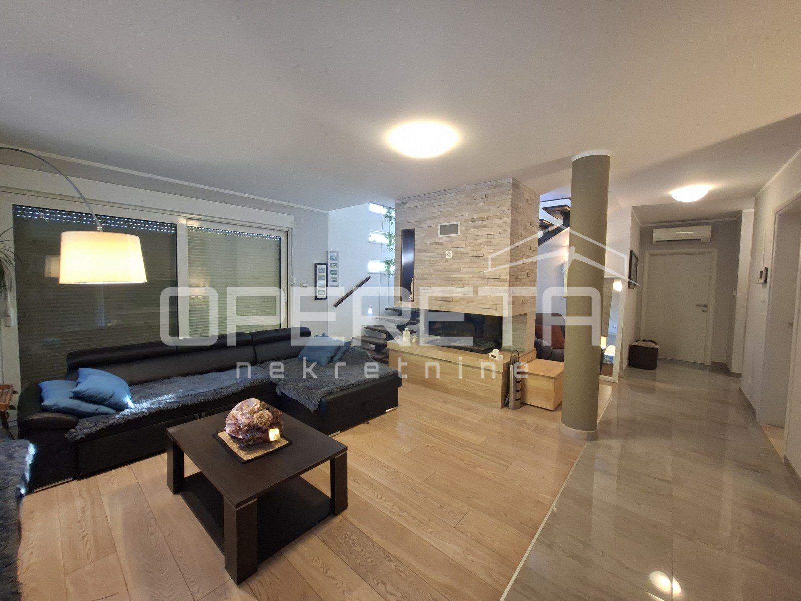 S ukupno 400 m² stambene površine, kuća se proteže na tri etaže – prizemlje i dva kata – te je pažljivo projektirana kako bi svaki prostor imao svoju svrhu i karakter.