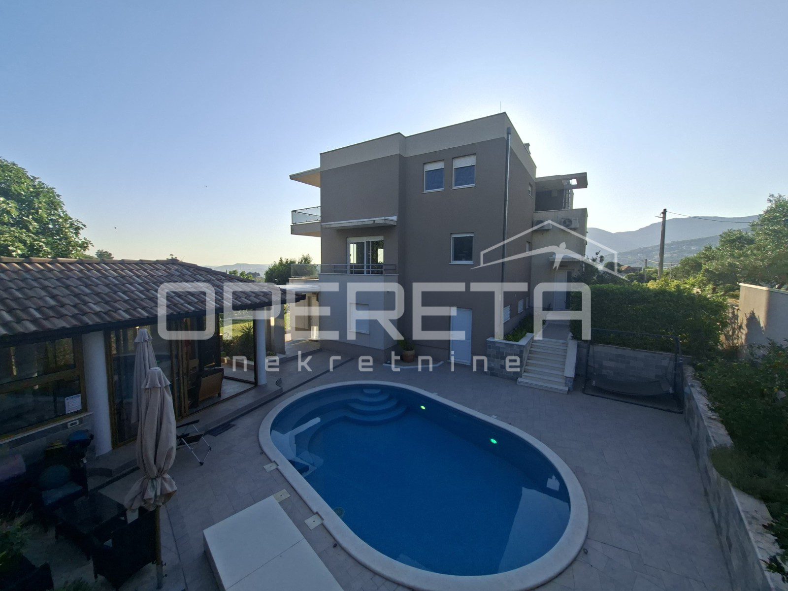 Na jedinstvenoj lokaciji, iznad grada Splita, u podnožju povijesne tvrđave Klis, smjestila se ova impresivna kuća koja objedinjuje prostranost, udobnost i spektakularan panoramski pogled na more, grad i otoke. Ova obiteljska vila nudi savršeni spoj mediteranske mirnoće i moderne funkcionalnosti, pružajući stanarima osjećaj luksuza i privatnosti, svega nekoliko minuta vožnje od gradske vreve.