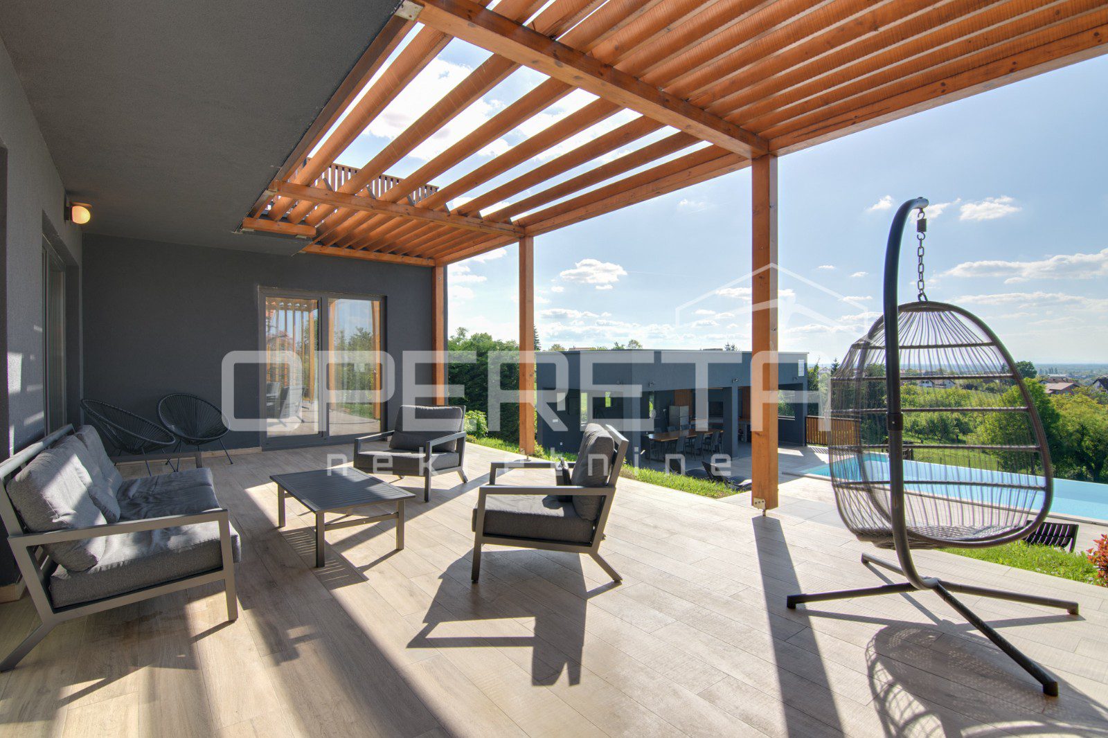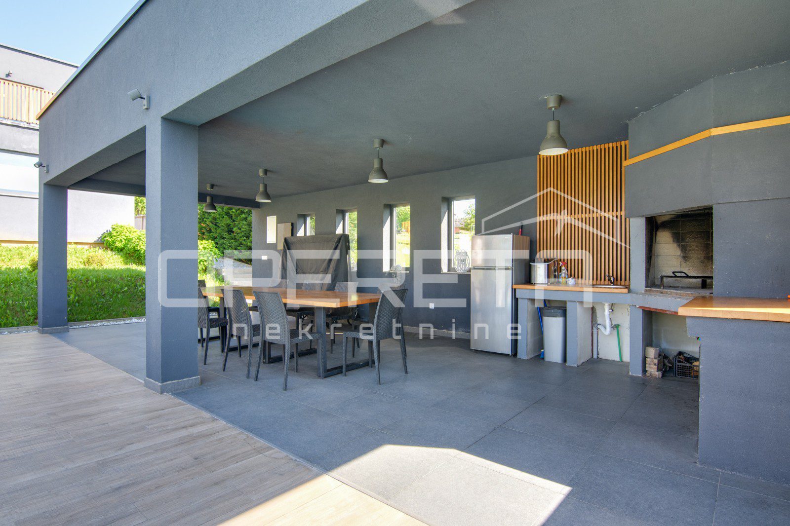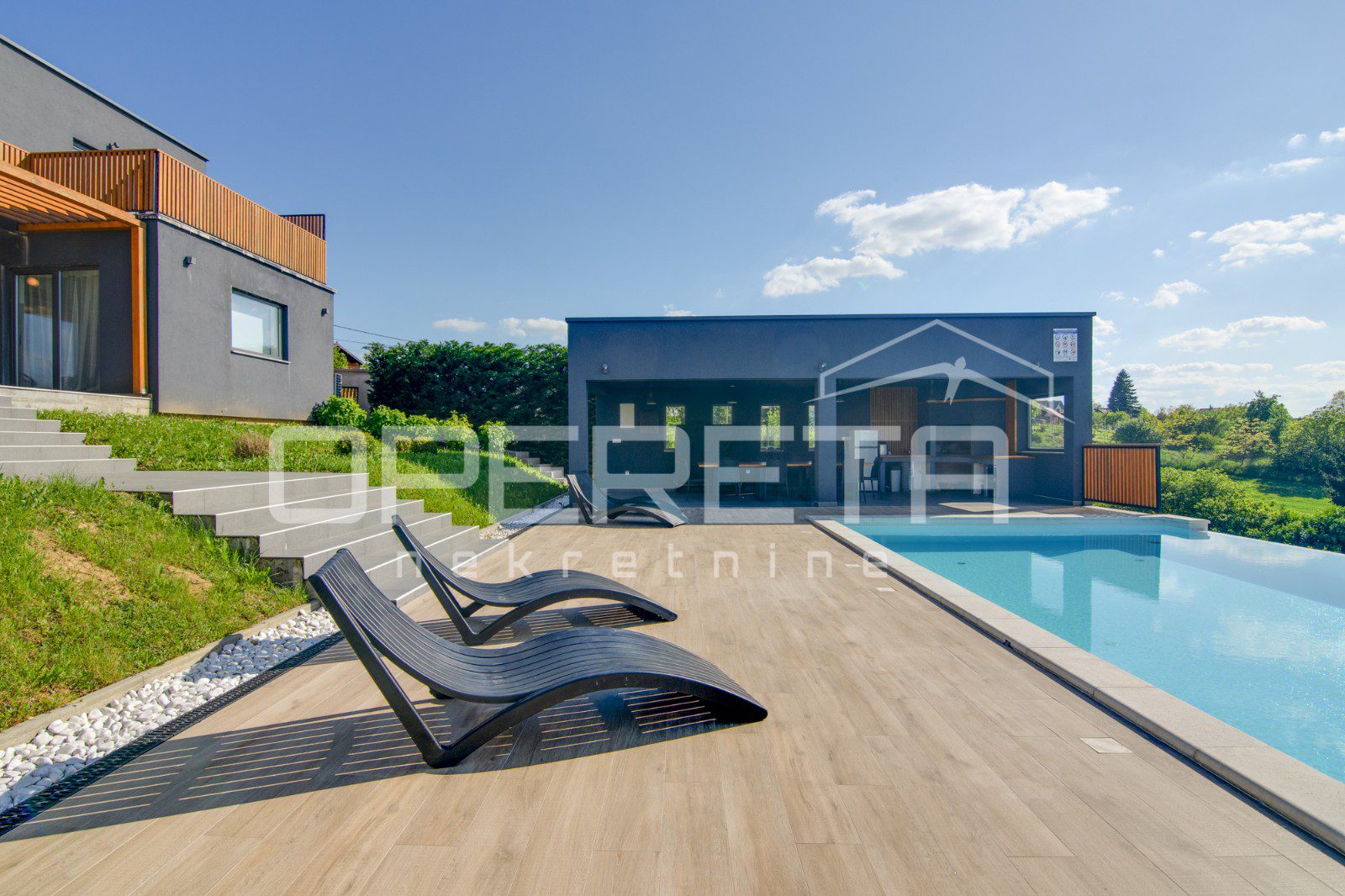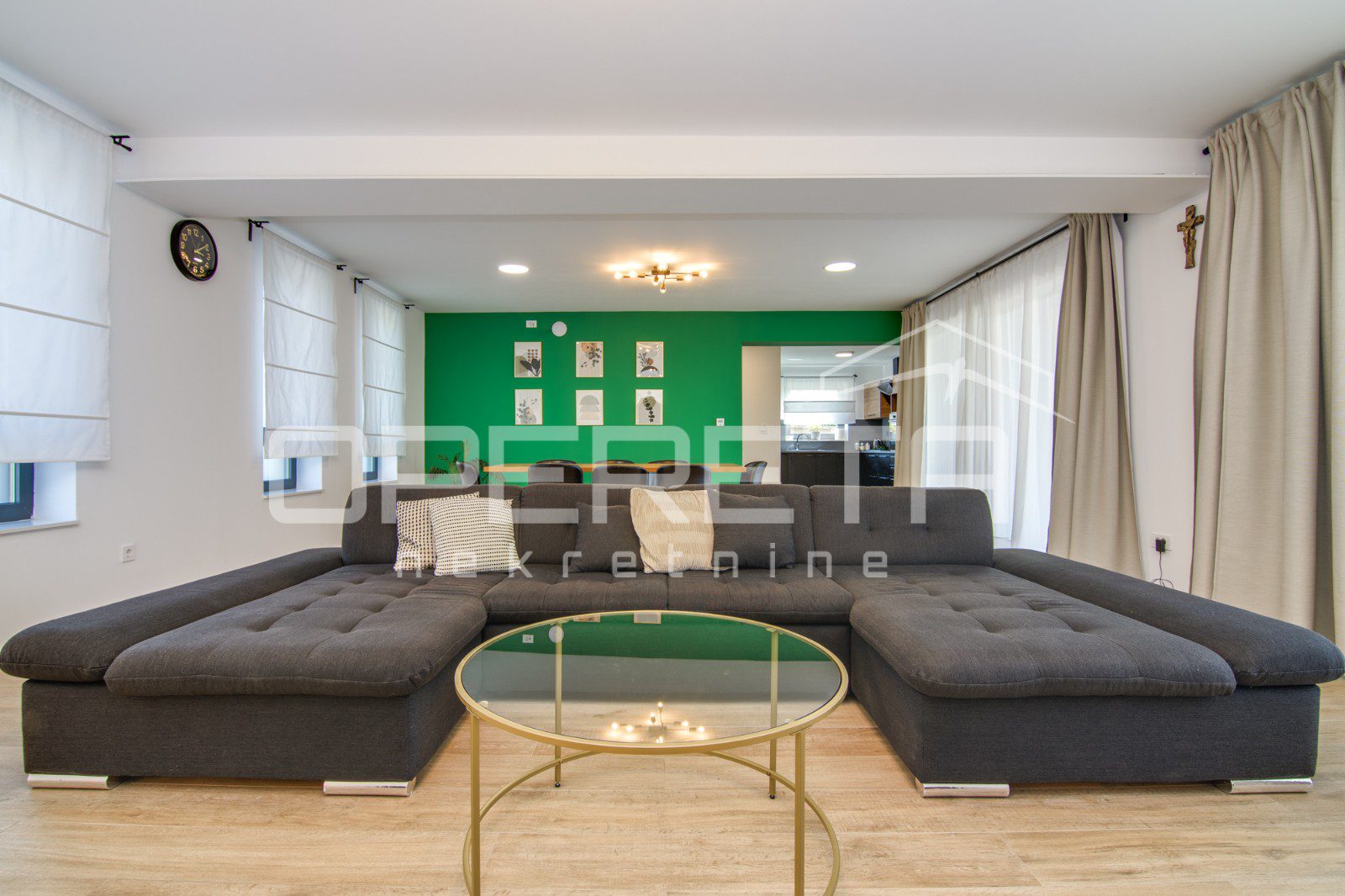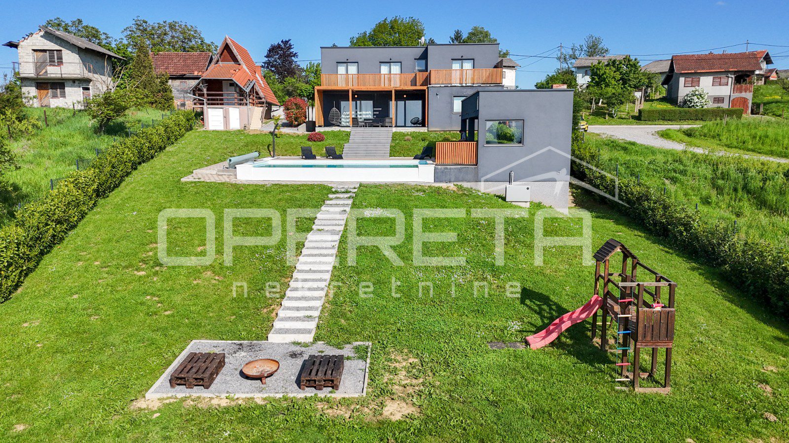Kuća je idealna za turistički najam, organizaciju proslava, eventa, djevojačkih i momačkih večeri, ali zbog izvrsnog rasporeda može biti i obiteljska kuća na par minuta pješice od bitnijih sadržaja za život(dućani, vrtić…). Prostrani interijer moderno uređen, hortikulturno uređeno dvorište sa otvorenim veeelikim pogledom u daljinu, pruža udobnost i eleganciju, vanjski prostor s bazenom poziva na opuštanje i uživanje u sunčanim danima stvarajući nezaboravne uspomene. PREPORUČUJEMO!!!