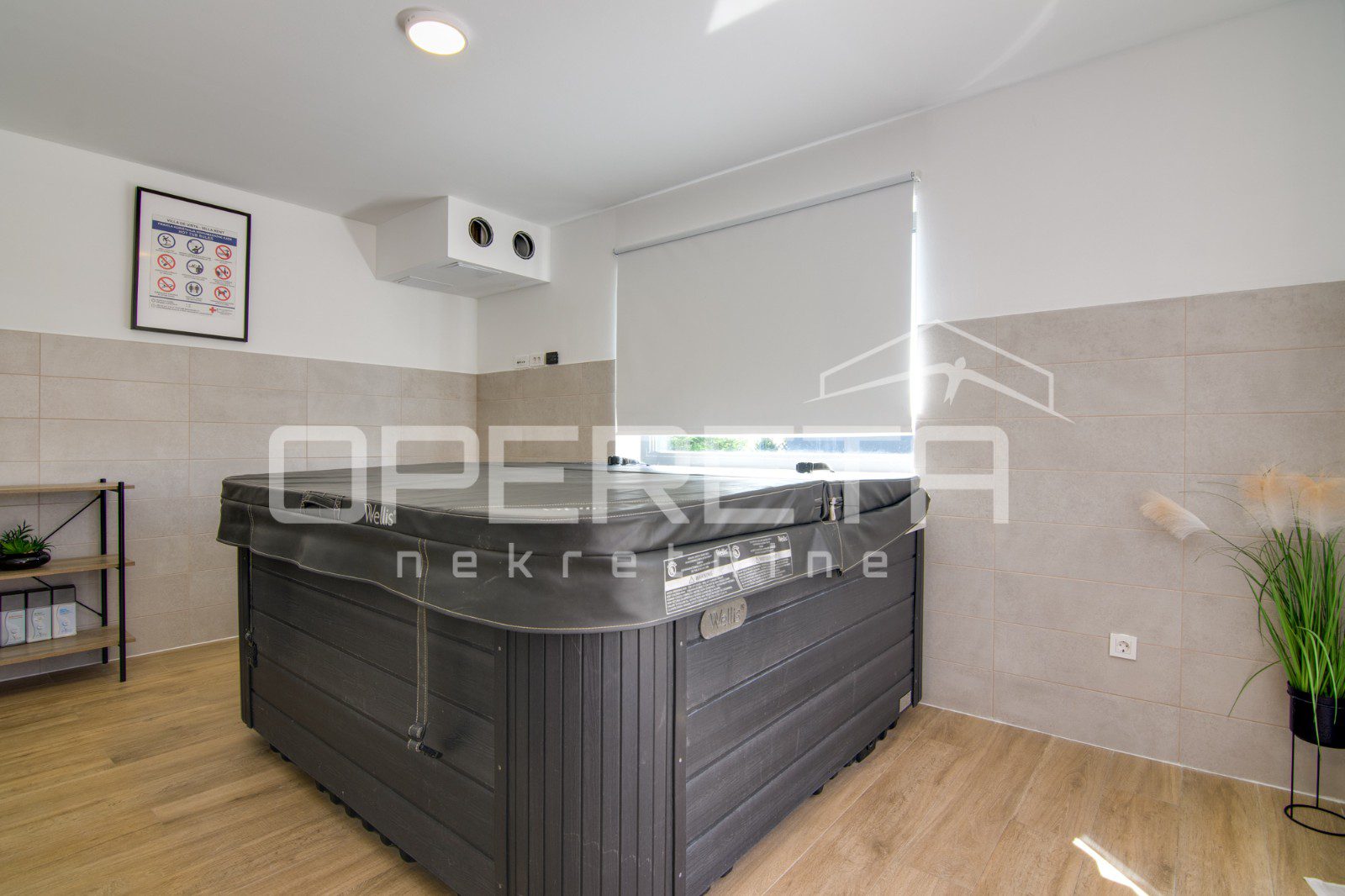 – preljevni, grijani bazen 45m2 s protustrujnim plivanjem i hidromasažnim mlaznicama