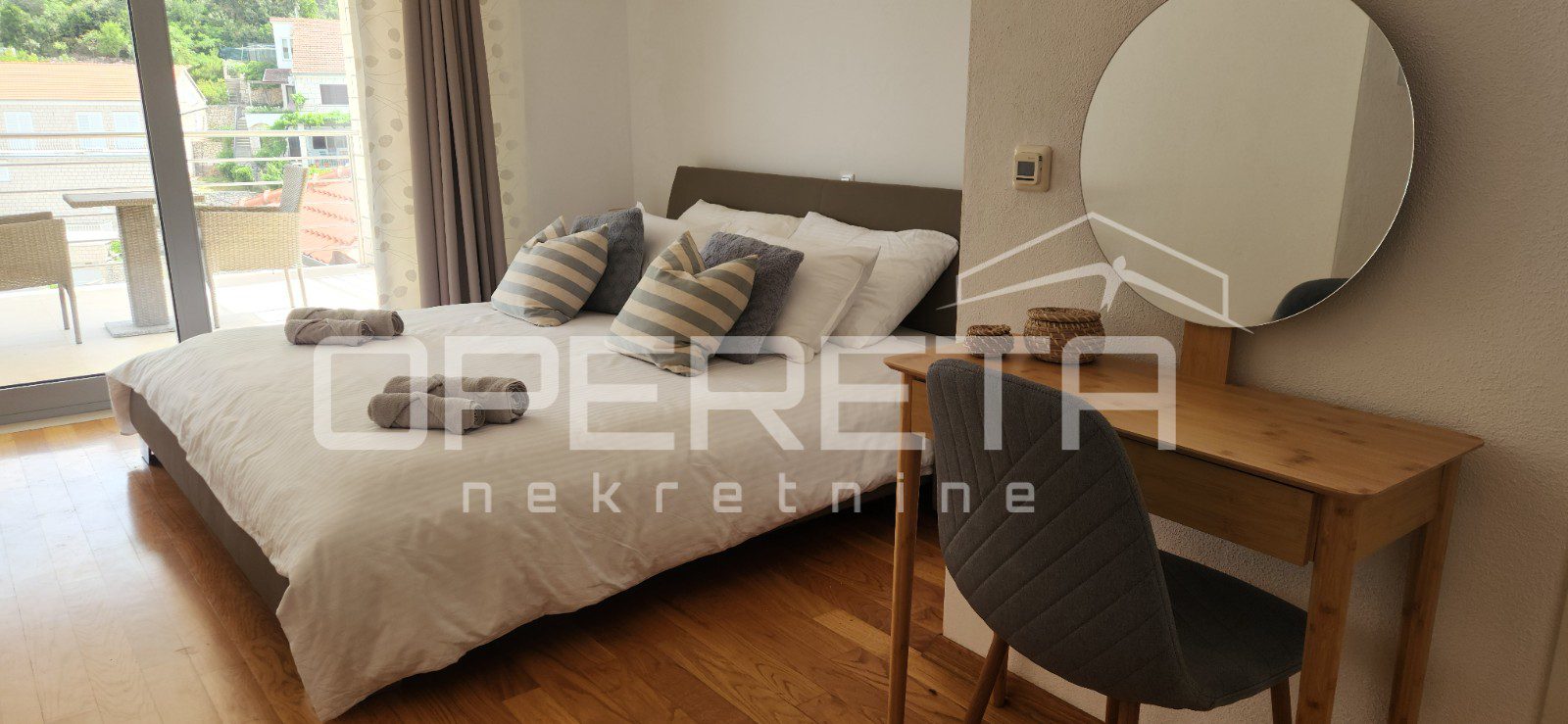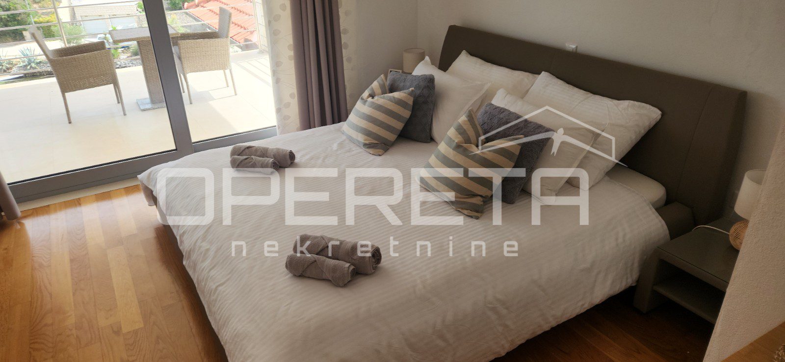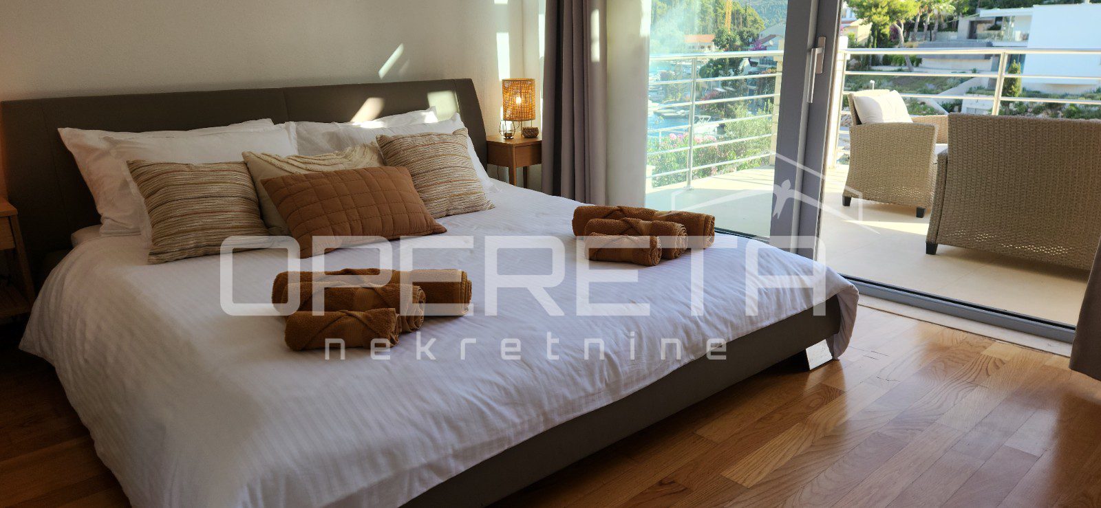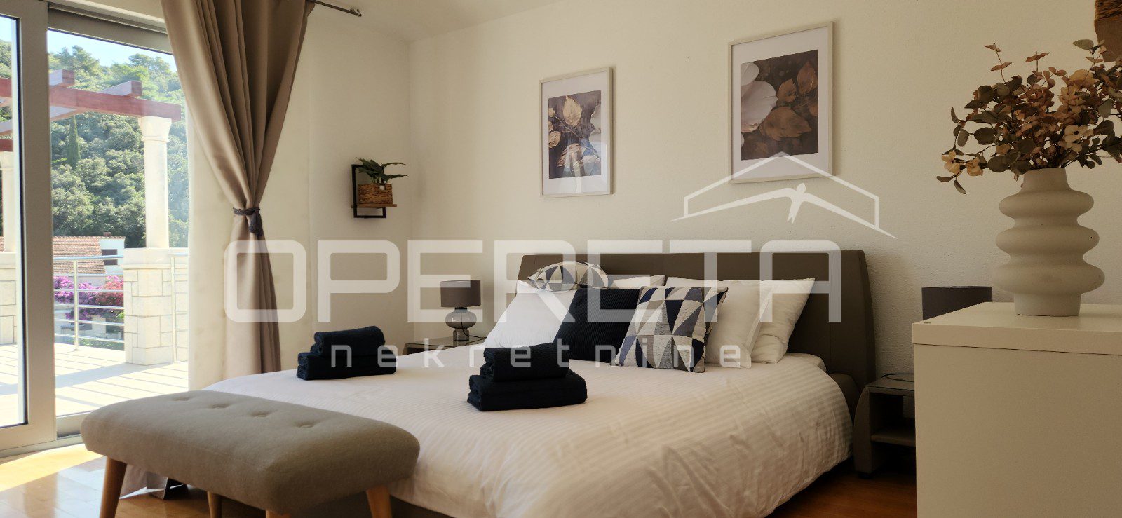 Iz ponude izdvajamo vilu u prvom redu do mora na lokaciji Žrnovo. Vila se sastoji od 4 spavaće sobe sa vlasitim kupaonicama od kojih svaka ima izlaz na balkon s kojeg se pruža predivan pogled na more. Prizemlje se sastoji od otvorenog dnevnog boravka i blagovaonice, moderne kuhinje i kupaonice za goste. Vani se nalazi bazen i prostor za roštilj.