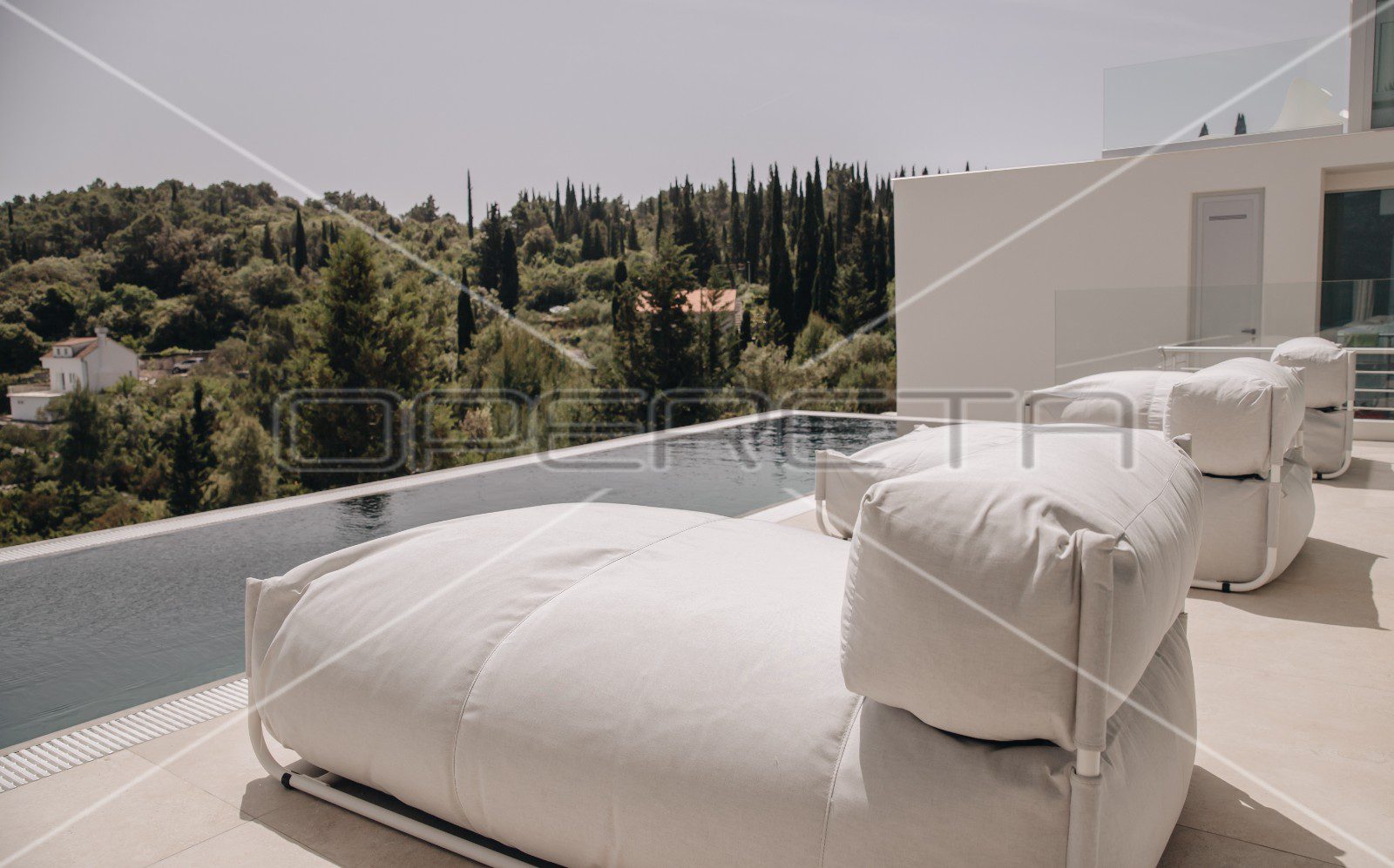 U Žrnovu, na otoku Korčuli, nalazi se suvremena vila koja svojim luksuzom i arhitektonskom izvrsnošću pruža neponovljiv doživljaj mediteranskog života. Ova impresivna rezidencija, izgrađena 2023. godine, savršeno je uklopljena u prirodni ambijent, pružajući spektakularan pogled na Korčulanski kanal, poluotok Pelješac te otočje Korčulanskog arhipelaga. Nalazi se na vrhunskoj mikrolokaciji, okružena luksuznim vilama.
