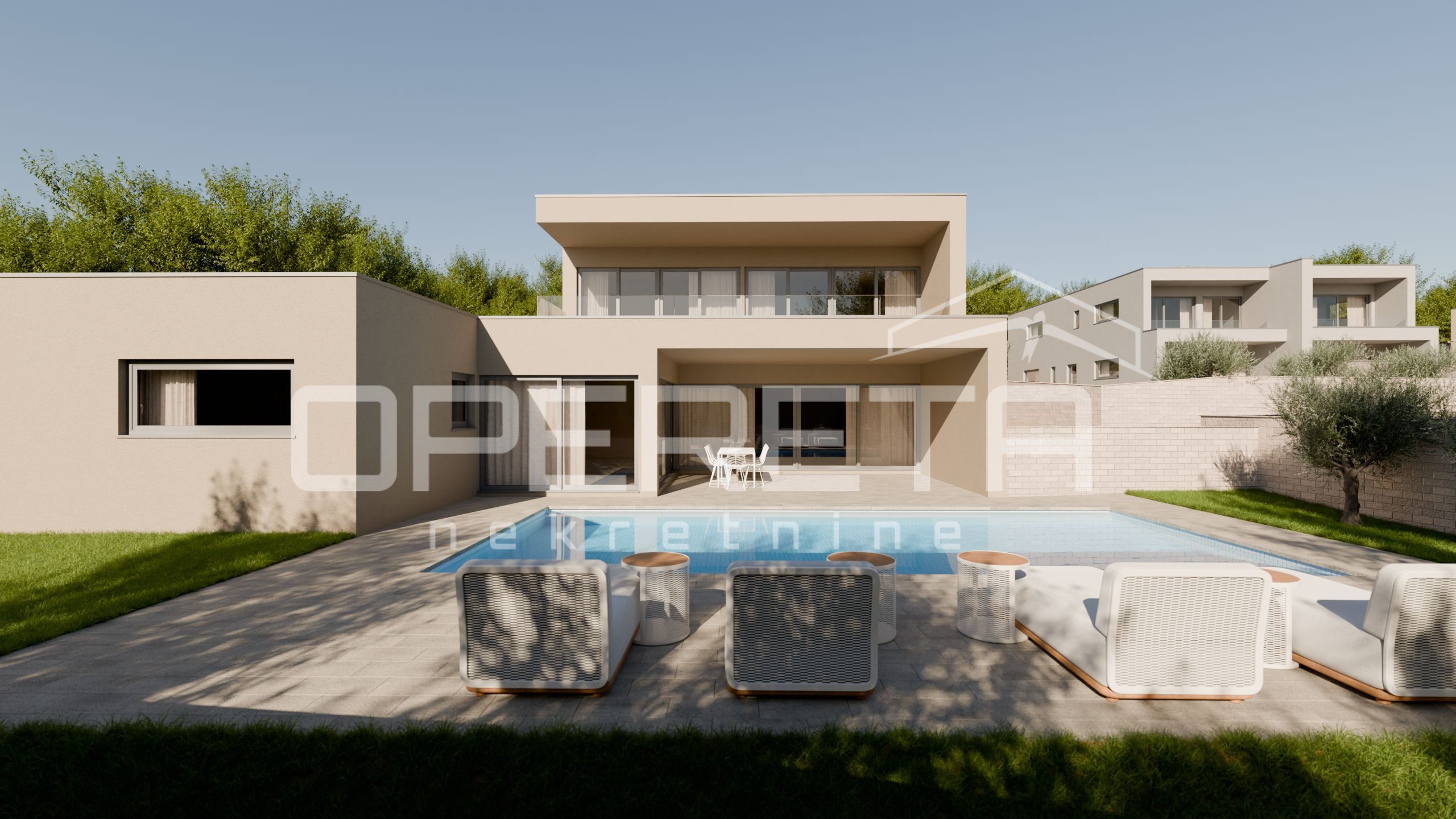 Unutar okućnice je bazen sa sunčalištem, prostranom terasom uz bazen, te natkrivenim dijelom za objedovanje i druženje.