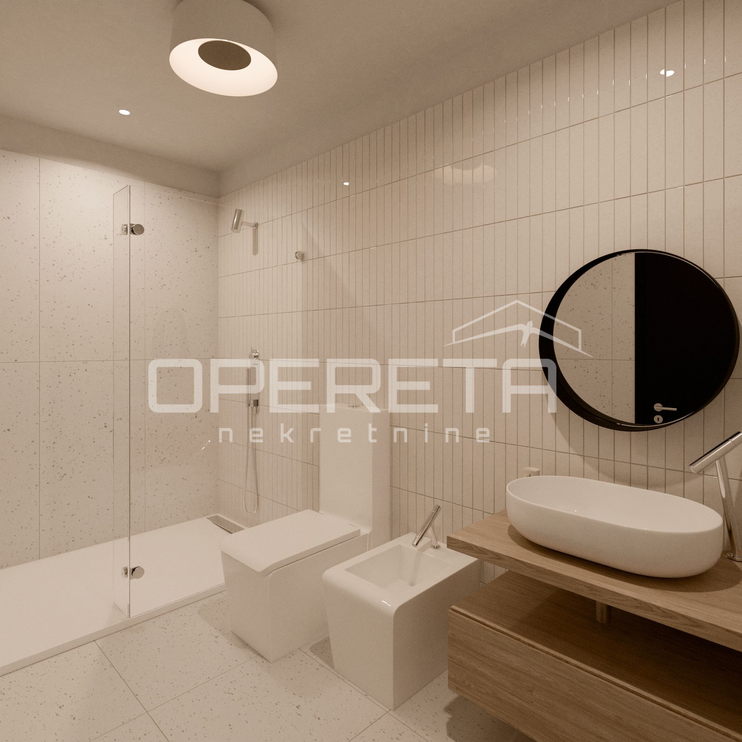 Dodatni toalet te zasebna kupaonica s predviđenim prostorom za saunu (funkcija se može prilagoditi željama kupca), i tehnička prostorija s praonicom, ostava.