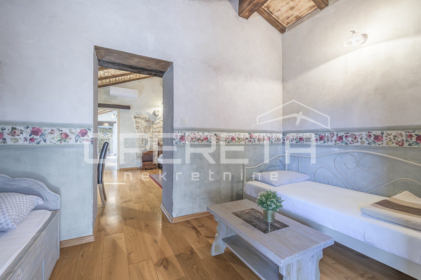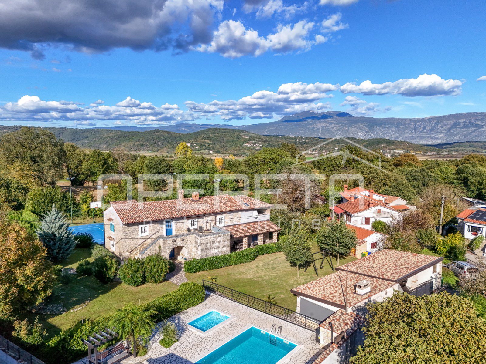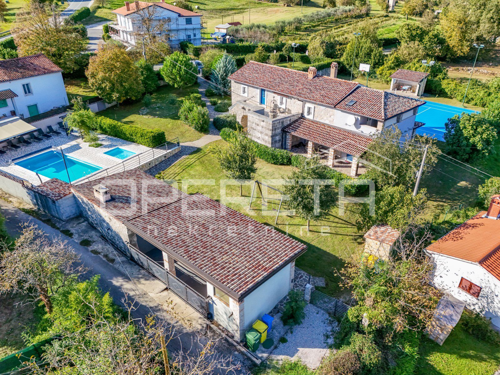Na prodaju je prekrasna autohtona kamena vila s bogatom ponudom popratnih sadržaja, smještena u mirnom okruženju samo pet minuta vožnje od povijesnog gradića Pićna. Ova jedinstvena nekretnina izvorno je izgrađena 1926. godine, a u potpunosti je renovirana 2018., pri čemu je pažljivo očuvan njezin izvorni rustikalni karakter uz dodir suvremenog komfora.