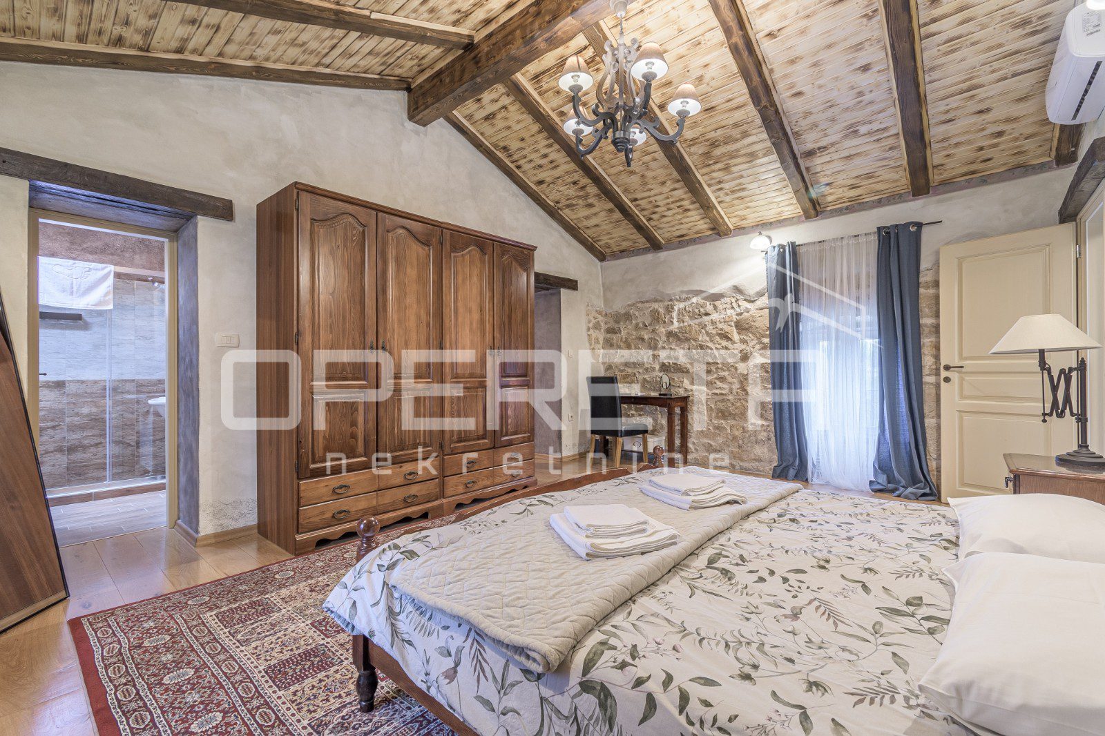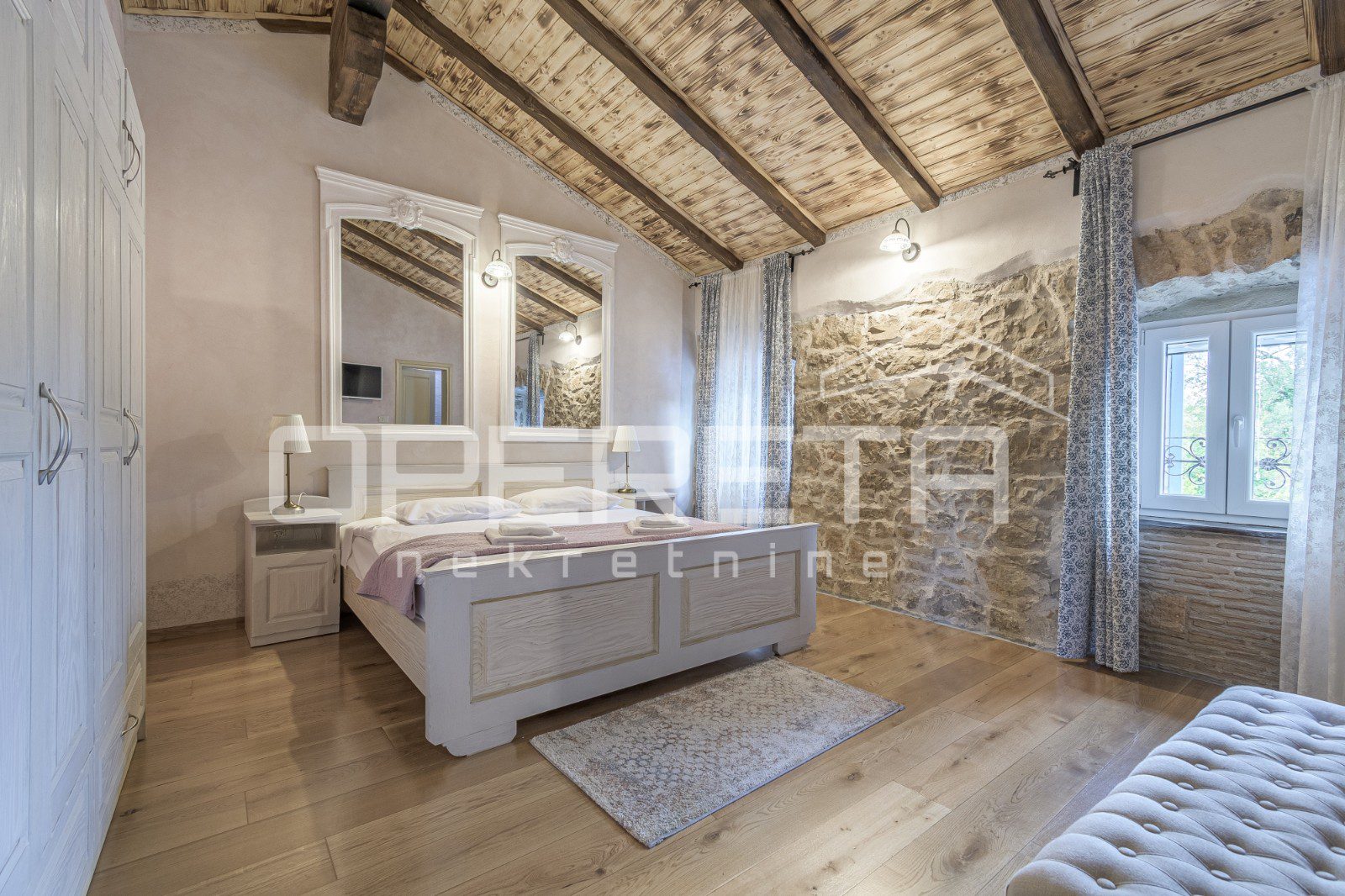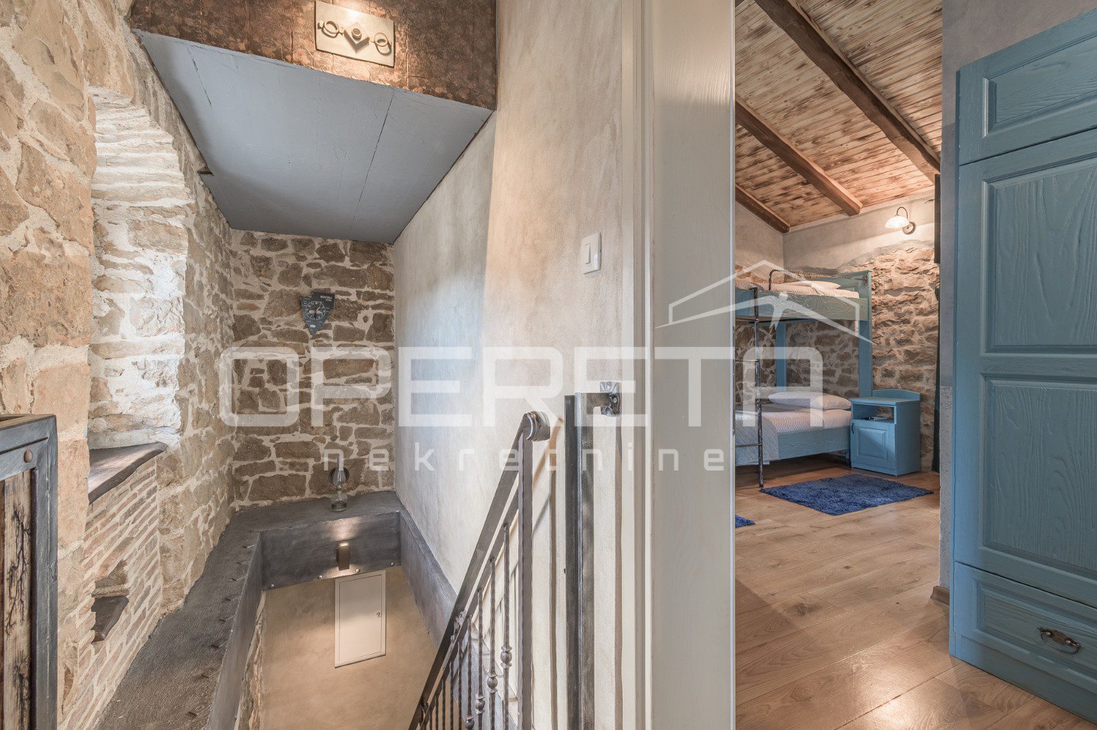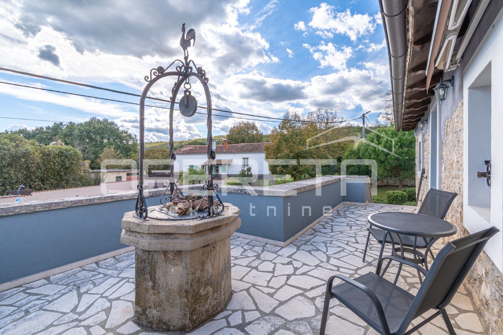 Na prodaju je prekrasna autohtona kamena vila s bogatom ponudom popratnih sadržaja, smještena u mirnom okruženju samo pet minuta vožnje od povijesnog gradića Pićna. Ova jedinstvena nekretnina izvorno je izgrađena 1926. godine, a u potpunosti je renovirana 2018., pri čemu je pažljivo očuvan njezin izvorni rustikalni karakter uz dodir suvremenog komfora.