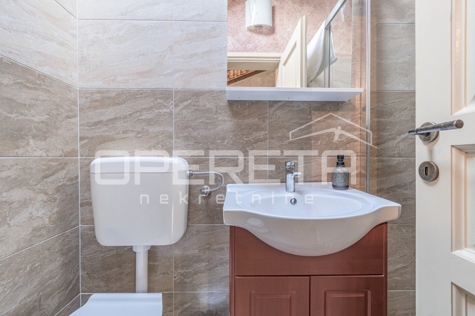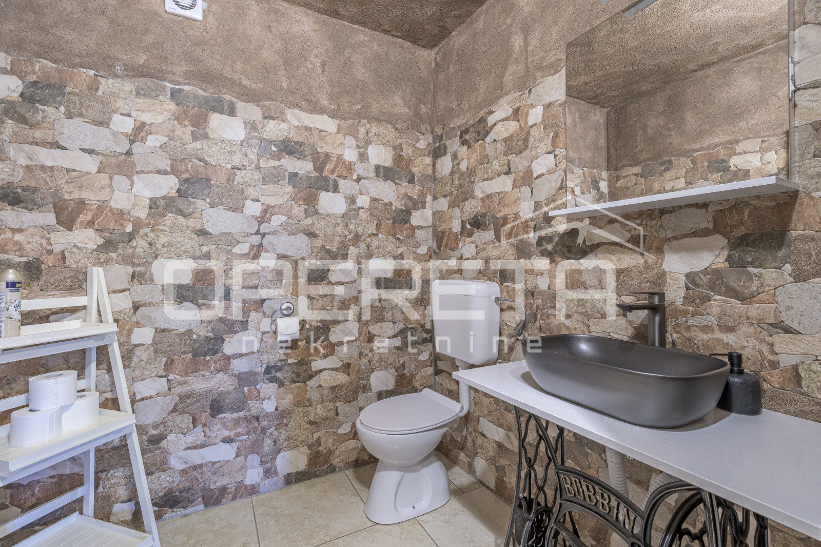 U prizemlju se nalazi udoban dnevni boravak s kaminom, potpuno opremljena kuhinja i blagovaonica, gostinjski toalet te praonica. Dio prizemlja s odvojenim ulazom čini zasebna spavaća soba s vlastitom kupaonicom – idealna za goste ili potpunu privatnost. Na katu se nalaze tri komforne spavaće sobe, svaka s vlastitom kupaonicom, što osigurava maksimalnu udobnost i funkcionalnost.