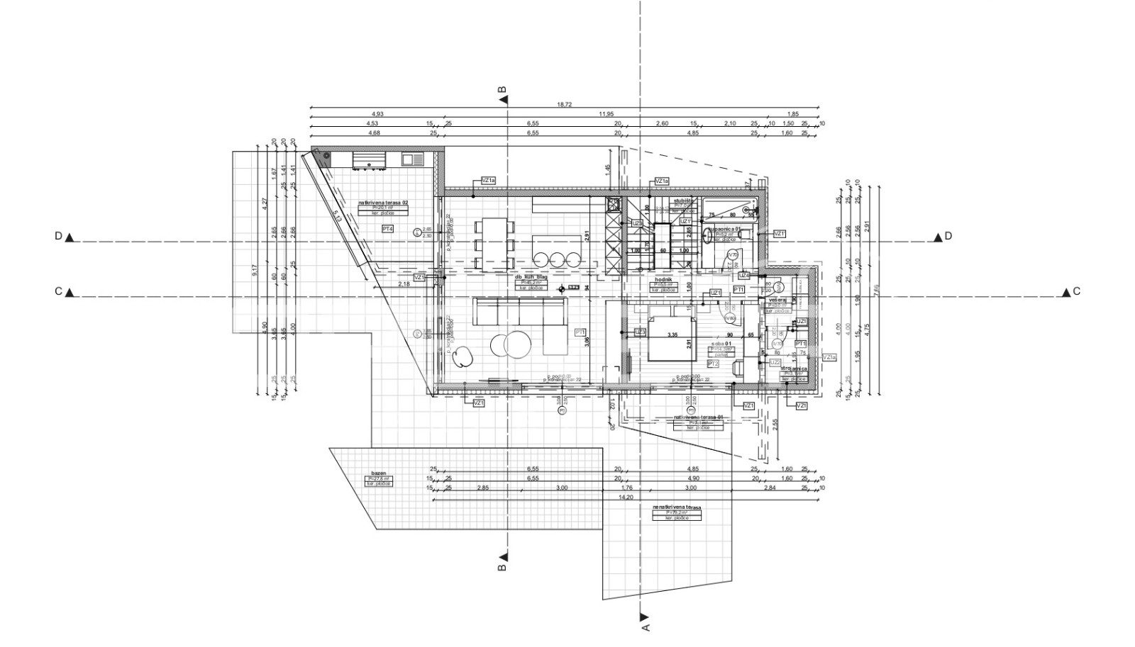 Vilase prostire na dvije etaže. U prizemlju se nalazi prostrani dnevni boravak povezan s kuhinjom i blagovaonicom, iz kojeg se izlazi na natkrivenu terasu s planiranom ljetnom kuhinjom – idealnim mjestom za druženja i uživanje u toplim ljetnim večerima. Na istoj etaži smještena je i jedna spavaća soba, kupaonica, ostava, vešeraj i kotlovnica.