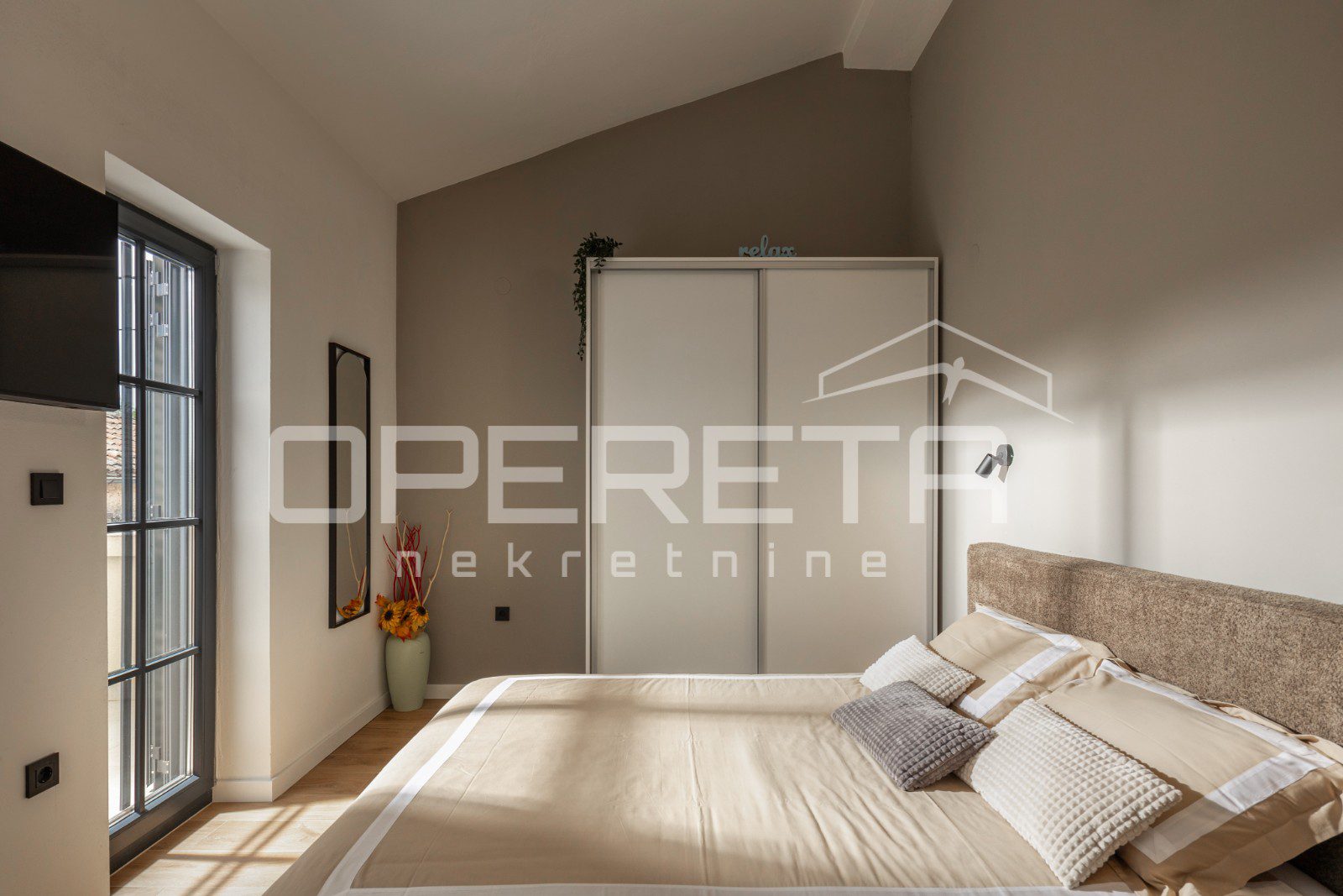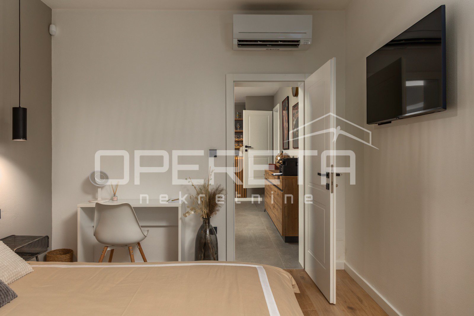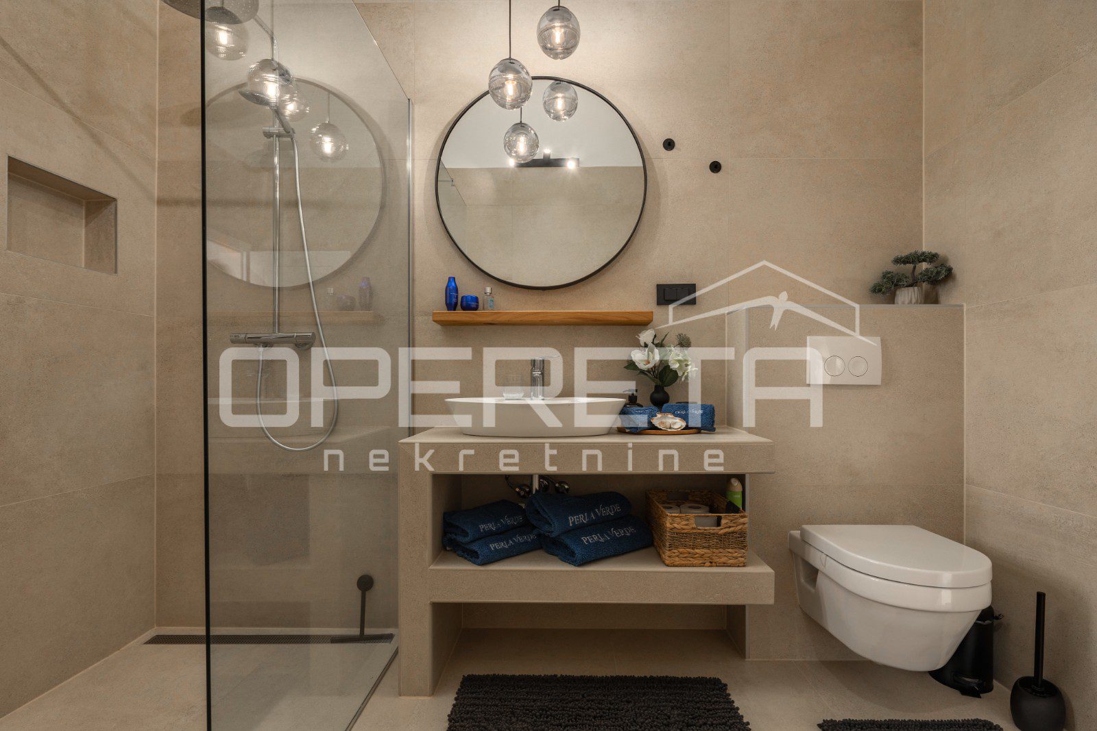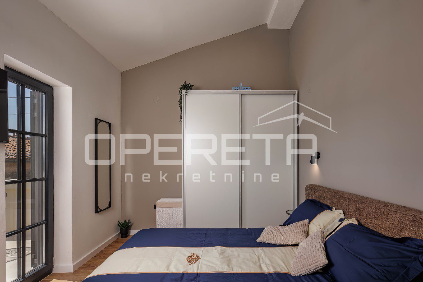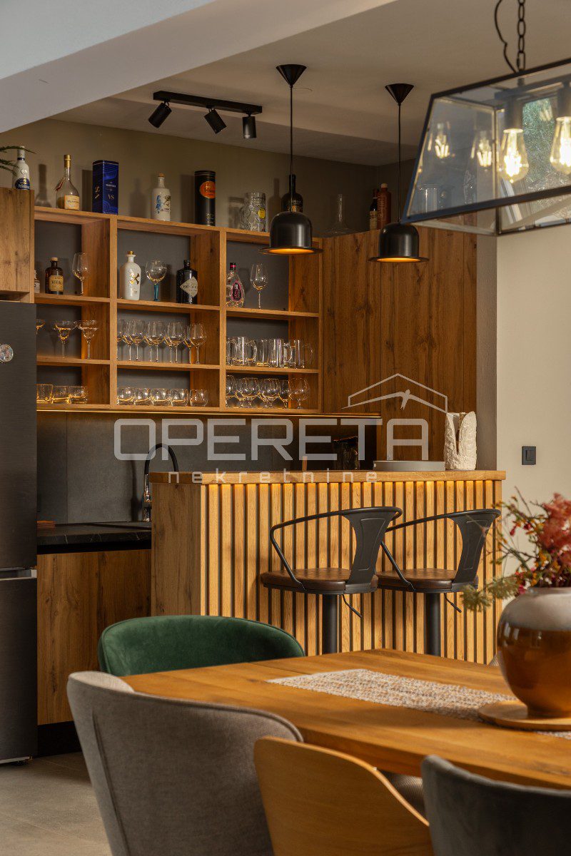 Unutrašnjost je osmišljena s naglaskom na udobnost i eleganciju. Četiri prostrane spavaće sobe imaju vlastite kupaonice uređene talijanskom keramikom, dok dnevni dio krasi autentični kameni kamin koji prostoru daje poseban karakter. Moderna kuhinja izrađena po mjeri povezana je s blagovaonicom i barom, stvarajući savršeno mjesto za zajednička druženja, dok su svi prostori pažljivo povezani s vanjskim terasama kako bi se naglasio sklad unutarnjeg i vanjskog života.