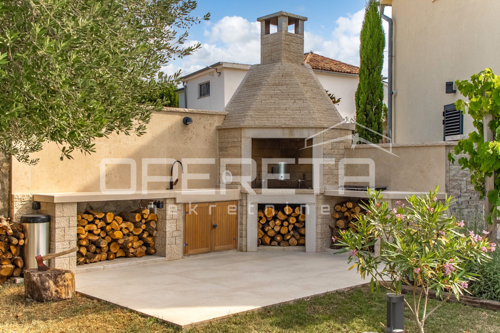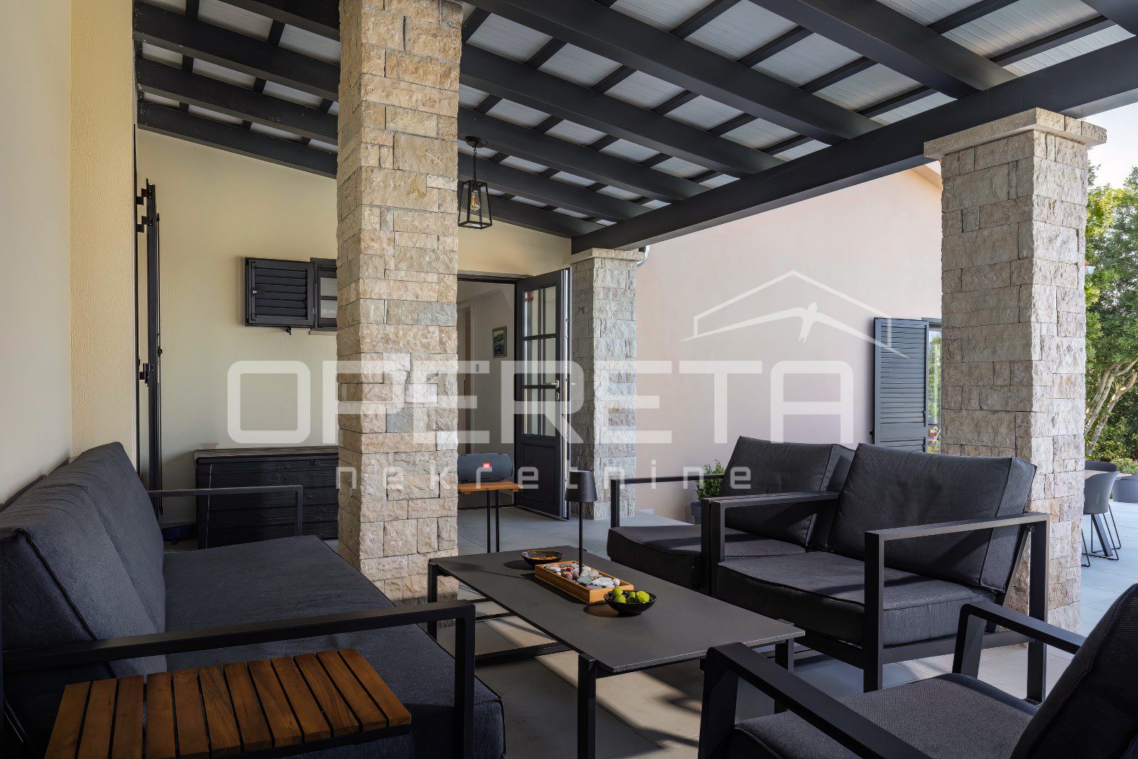 Ljetna kuhinja izrađena od Kanfanarskog kamena poziva na gastronomska iskustva na otvorenom, dok terase nude obilje prostora za opuštanje i druženja s obitelji i prijateljima. Posebna pažnja posvećena je i praktičnosti – vila je opremljena solarnim postrojenjem, punjačem za električna vozila te prostranim parkiralištem s nadstrešnicom.