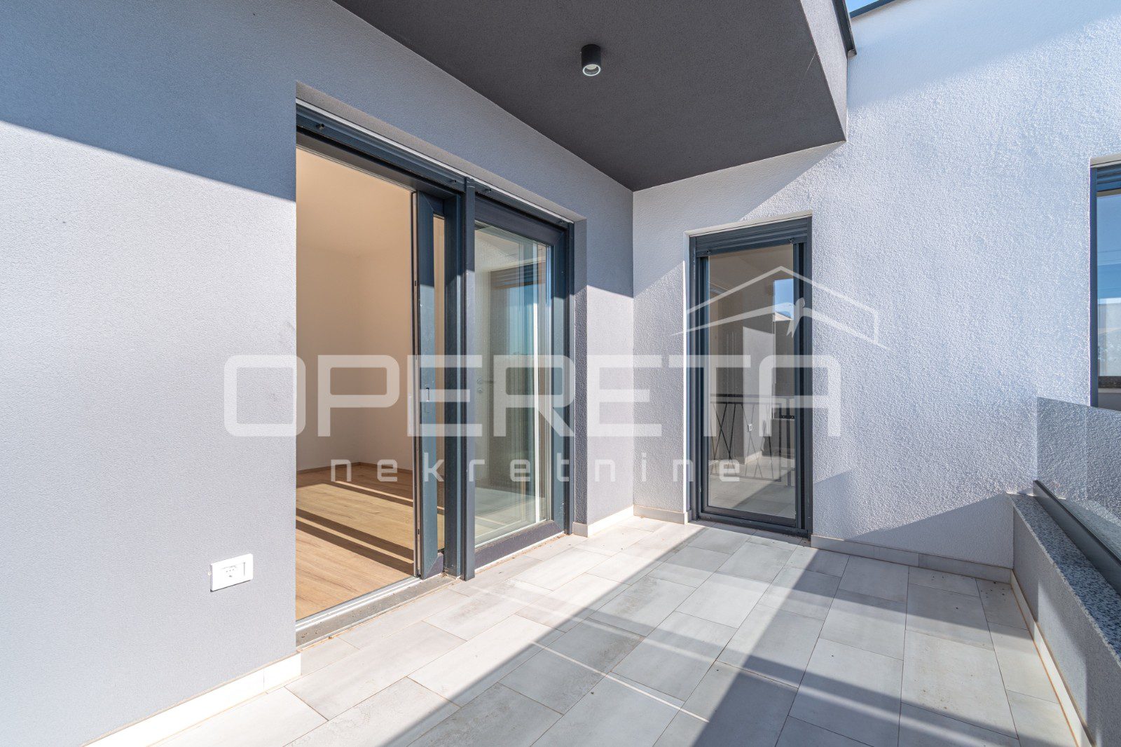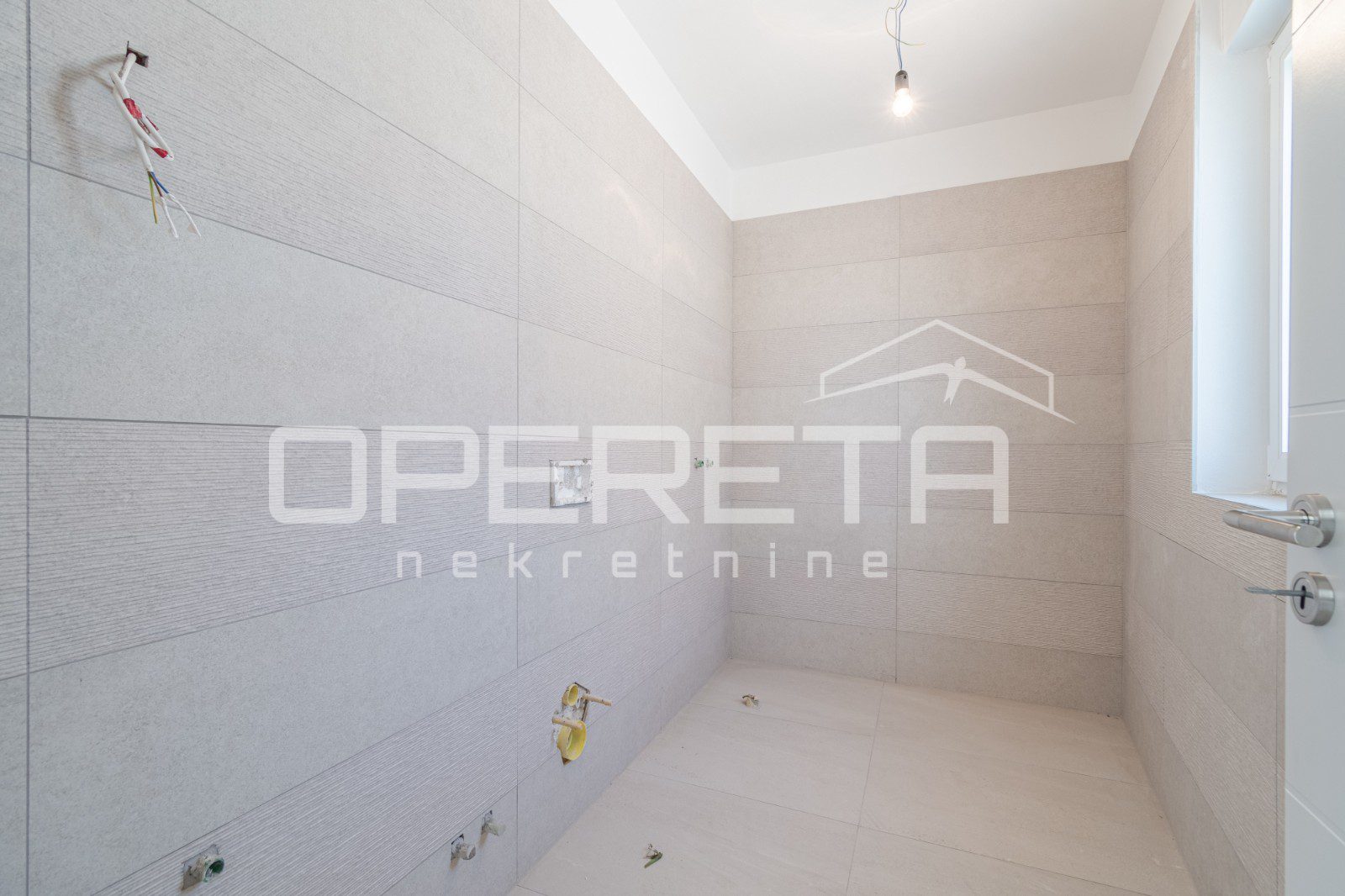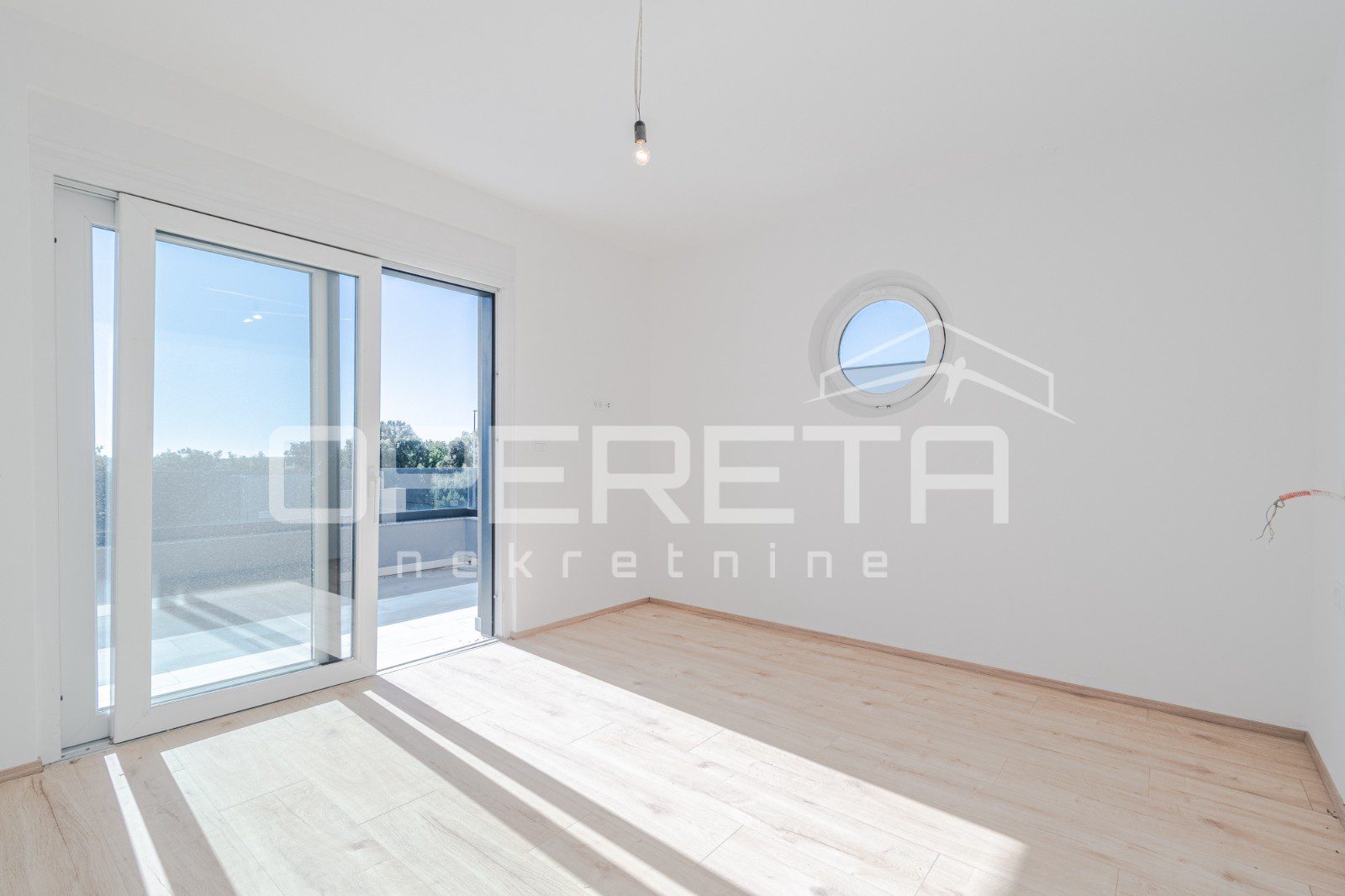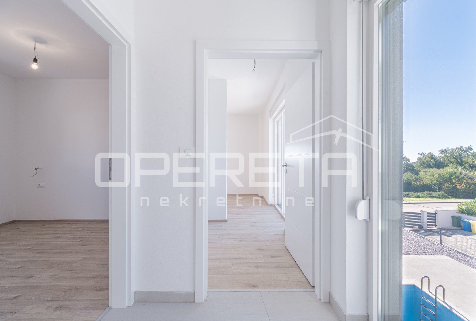 Kuća je orijentirana prema jugu, s ravnim krovom. Stolarija je PVC, s troslojnim staklima i električnim podizačima. Sve prostorije osim soba su obložene pločicama, a postavljene su 4 klima uređaja (u svakoj sobi i dnevnom boravku). Okućnica uključuje bazen veličine 28 m2 (7×4 m), idealan za uživanje u toplim ljetnim danima, vrt i parkirna mjesta.