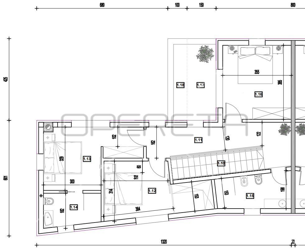 Na katu su tri spavaće sobe od kojih jedna ima vlastitu terasu i kupaonica.
